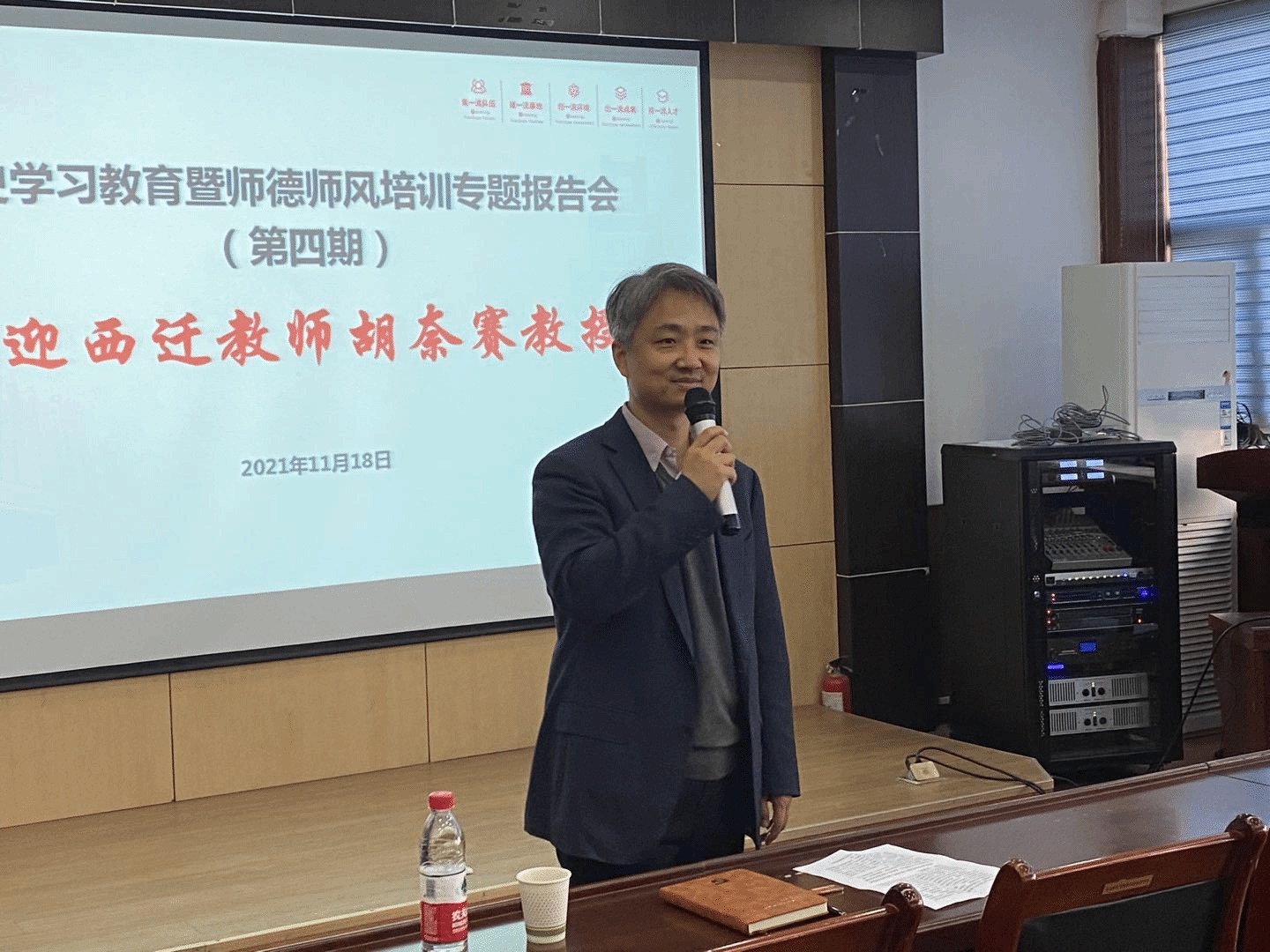 举办了第四期党史学习教育暨师德师风培训专题报告会,我校西迁教师胡奈赛教授受邀做了题为《老交大的那些故事》的专题报告,学院全体教职工和学生入党发展对象参加了报告会。学院党委书记李小跃主持报告会。