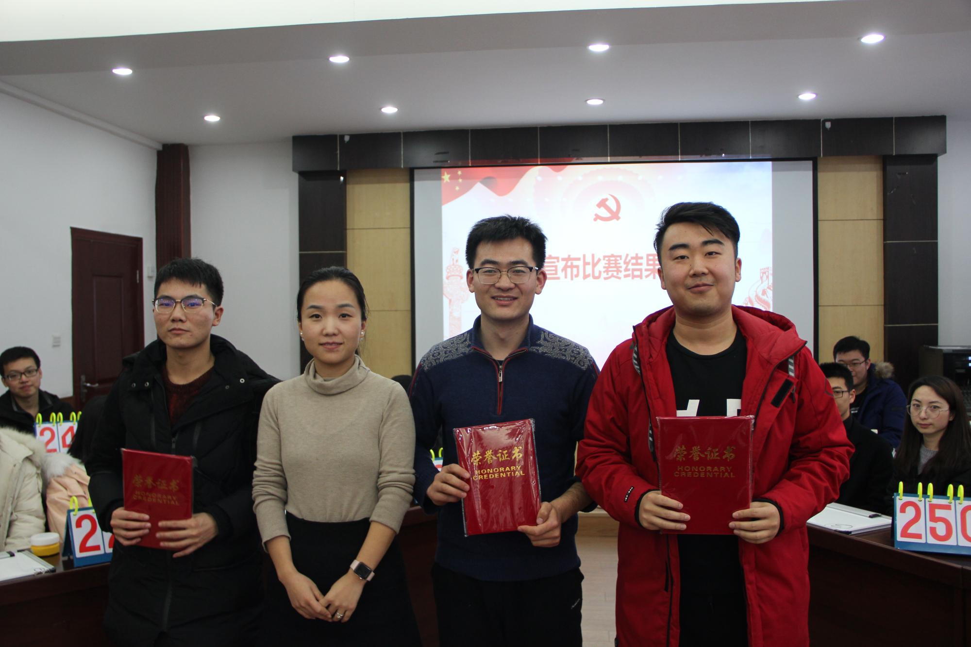 经过紧张而激烈的角逐,硕士16级党支部荣获本次比赛一等奖;博士航空宇航党支部和博士力学第三党支部荣获二等奖;硕士18级党支部,硕士17级第一党支部和博士力学第二党支部支部荣获三等奖。 陈永华副书记和李昱静老师分别为获奖队伍颁奖并合影留念,本次活动圆满落幕。