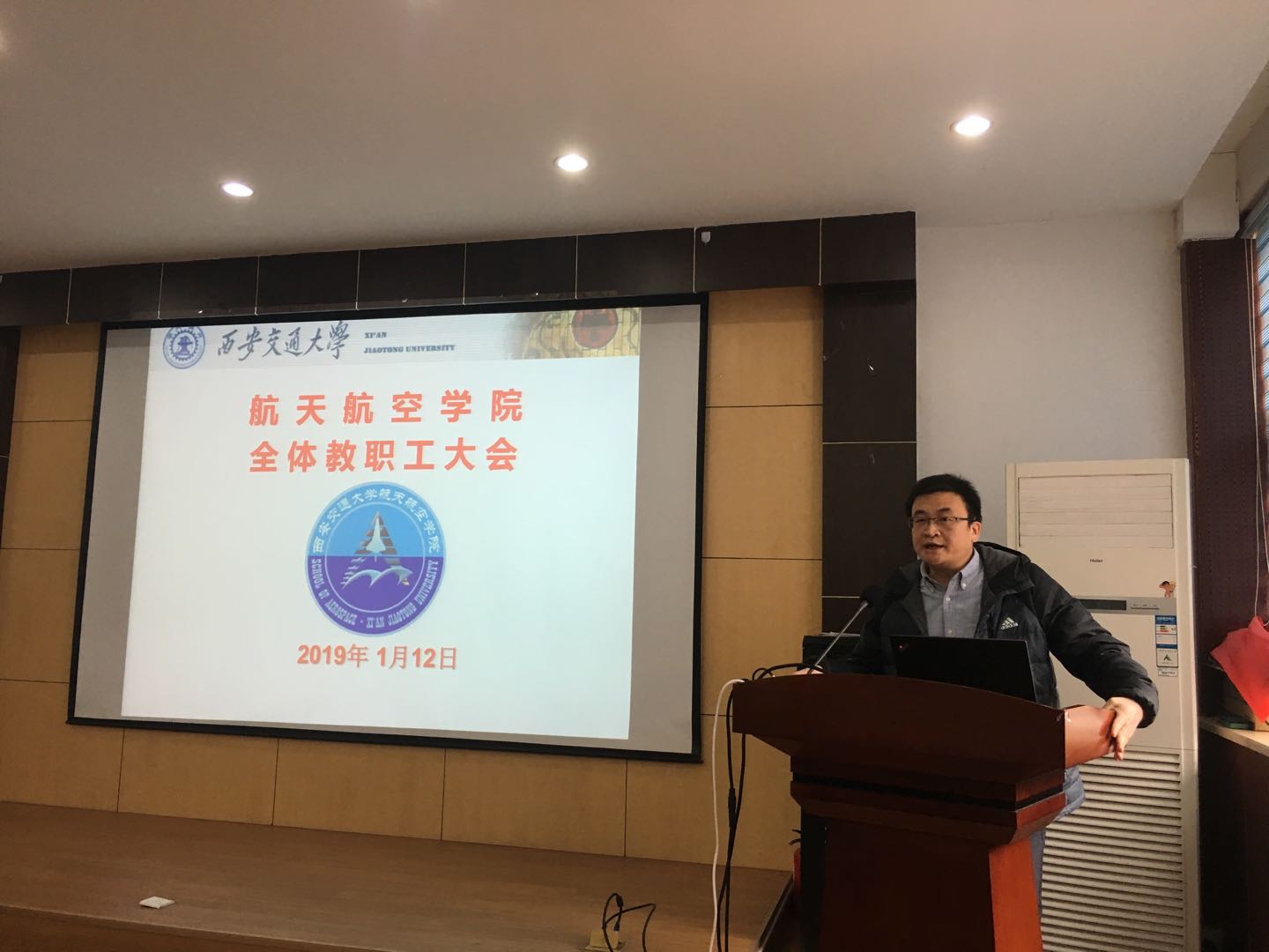 申胜平院长带领学院教工集体学习了此次学校寒假工作会上王树国校长题为《历史的重大机遇,交大的使命担当》的报告内容,传达了张迈曾书记“强化改革思维、落实改革举措、迎接新的挑战、创造新的贡献”的主体报告以及对2019年重点工作的部署。