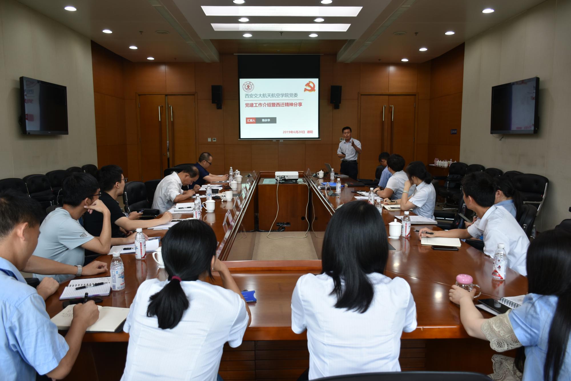 党委组织架构、党建工作整体思路、党建工作开展情况和所取得的成绩,阐述了西安交大“西迁精神”的由来、内涵与意义,向与会人员讲述了“西迁精神”的代表人物及感人的西迁故事。