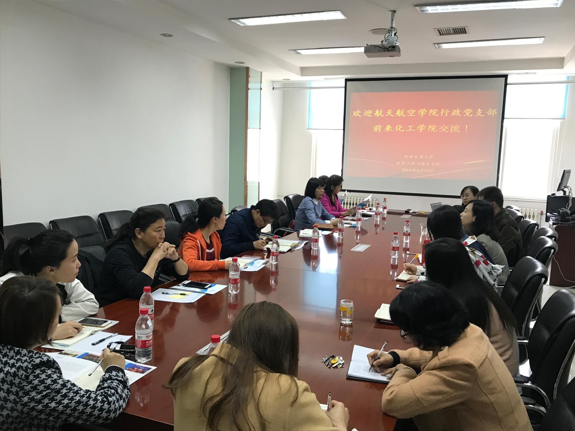 机关党支部全体成员在学院副书记陈永华、党支部书记车春莉和院办主任王琳的带领下与化工学院行政与实验党支部,进行工作交流。会议由化工学院行政党支部书记张敏主持。