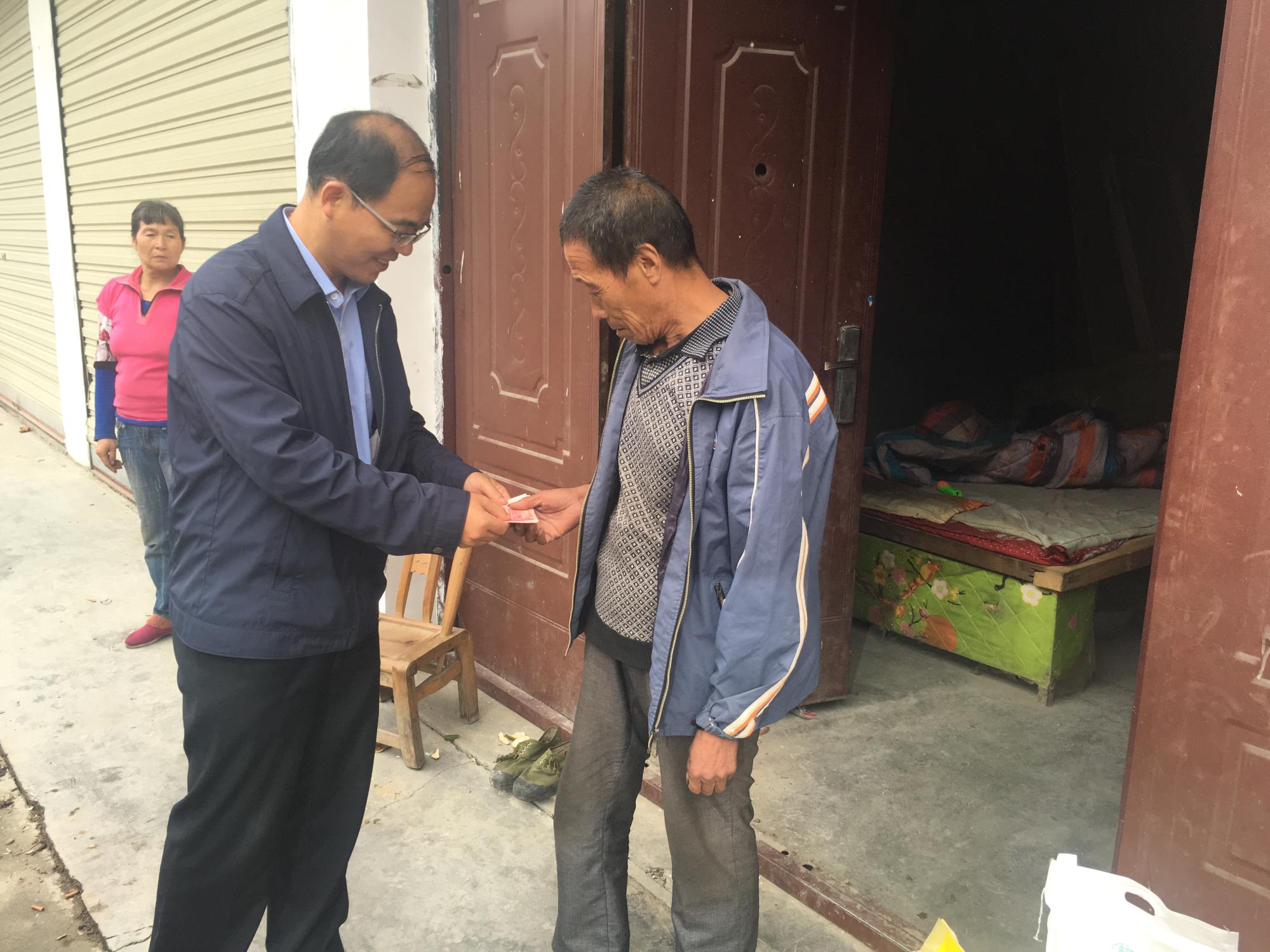 所结对帮扶的是磨沟村贫困老人黄友兹夫妇。黄友兹老人今年66岁,妻子身患残疾,夫妇两人均不具备从事重体力劳动的能力,家中没有农田,没有收入来源,生活十分困难。徐自力老师一行人为他们送去了米、面、油等慰问品及500元慰问金,并向黄友兹老人了解了他们的生活情况和经济情况。