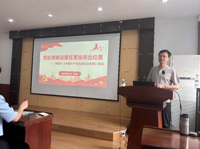 计算力学党支部刘咏泉副教授谈到,聆听此次报告让我对《条例》有了更深刻的认识,作为一名教师党员,要将党纪党规牢记在心,时刻自警自醒,用党纪来规范自己的言行举止,守好课堂教学主阵地,培养拔尖创新人才,助推科技自立自强。