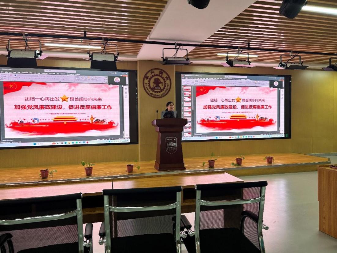 张亚红总结发言。她充分肯定了本次党纪学习教育联学共建活动形式,积极响应党的号召,贴合时政热点,具有深刻意义。同时,她结合实际案例进行分析,说明了党纪学习的重要性,并勉励党员同志们继续把握精髓要义,不断增强自身纪律意识,为实现中华民族伟大复兴的中国梦和推动学校事业发展贡献青春力量。