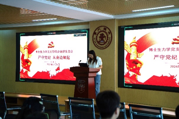 博士生力学第二党支部彭牧秋同志重点领学了《中国共产党纪律处分条例》(以下简称“条例”)中的生活纪律部分,指出生活中坚持勤俭节约、反对铺张浪费的重要意义,并通过对现实案例的分析说明生活纪律的教育警示作用,号召大家学习老一辈科学家的优良生活作风和崇高理想信念。