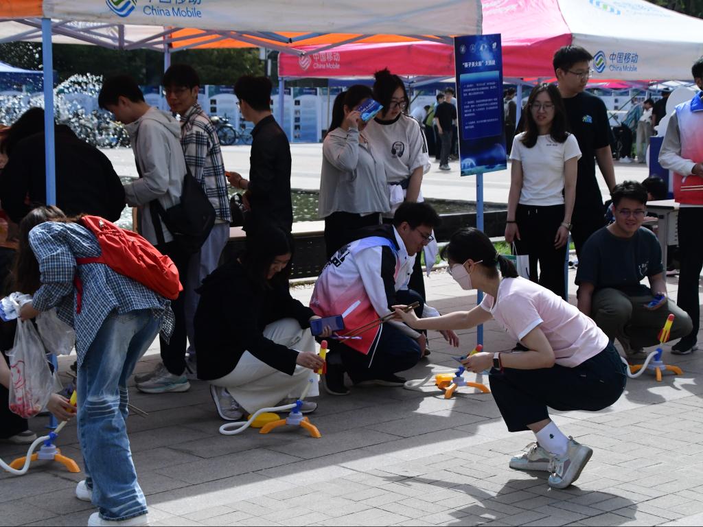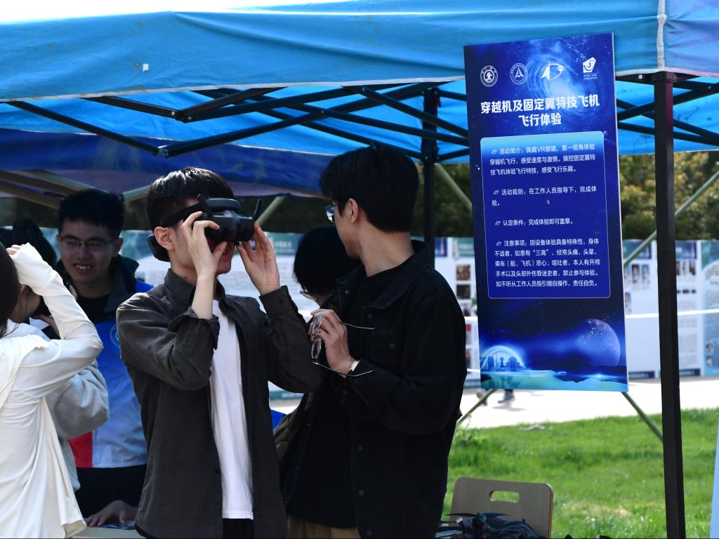 在互动体验区,支部成员充分发挥专业特长,指导参观者进行航空模拟飞行操作,协助完成手抛滑翔机制作教学,组织旋翼无人机第一视角飞行体验,并配合开展天文观测等系列体验活动。通过“理论讲解+实践操作”的服务模式,让航天科技知识变得触手可及。