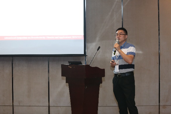 本次会议的10余次邀请报告,内容涉及了挠曲电领域中力、电、光、热等多个研究方向,参会专家均为国内外挠曲电相关研究领域的权威专家。其中美国休斯敦大学的Pradeep Sharma教授对挠曲电研究的理论及应用进行了介绍,尤其是针对软物质当中的挠曲电效应的力学模型和理论分析;巴塞罗那纳米科学与技术研究所的Catalan教授展示了挠曲电和挠曲电电子学的相关工作;南方科技大学的李江宇教授介绍了用AFM对挠曲电效应进行表征的一系列工作;香港理工大学的戴吉岩教授讨论了钙钛矿氧化物及其异质结构中的光电挠曲电效应和界面挠曲电效应;同济大学的庄晓莹教授介绍了纳米结构挠曲电效应的多尺度模拟和优化;浙江大学的王杰教授展示了应变和应变梯度对铁电材料拓扑畴结构的影响。