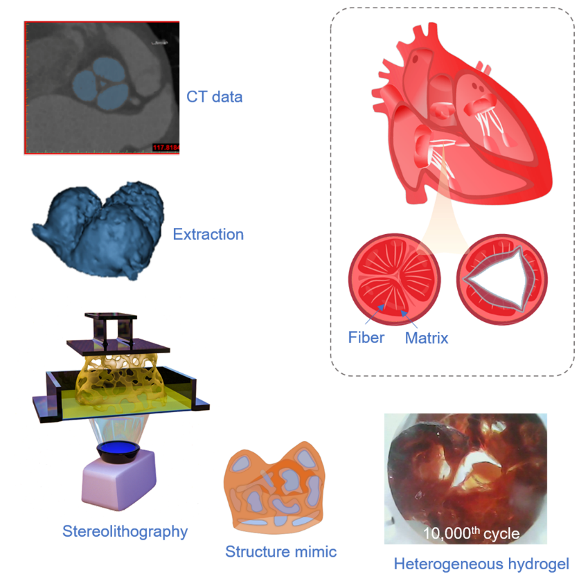 力学性能的优劣是决定水凝胶应用的关键因素。自2003年以来,研究人员相继采用双网络等策略实现了水凝胶的高模量、高强度及高断裂韧性。近年来,人们发现高强度水凝胶的疲劳性能较差,制约着其进一步发展。与之不同的是,天然生物组织(心脏瓣膜、肌腱、声带等)往往具有复杂的形状和良好的抗疲劳性质,例如心脏瓣膜在人的一生中平均需开合几十亿次而不发生破坏。因此,如何模拟生物组织研发抗疲劳水凝胶成为领域内关注的焦点。