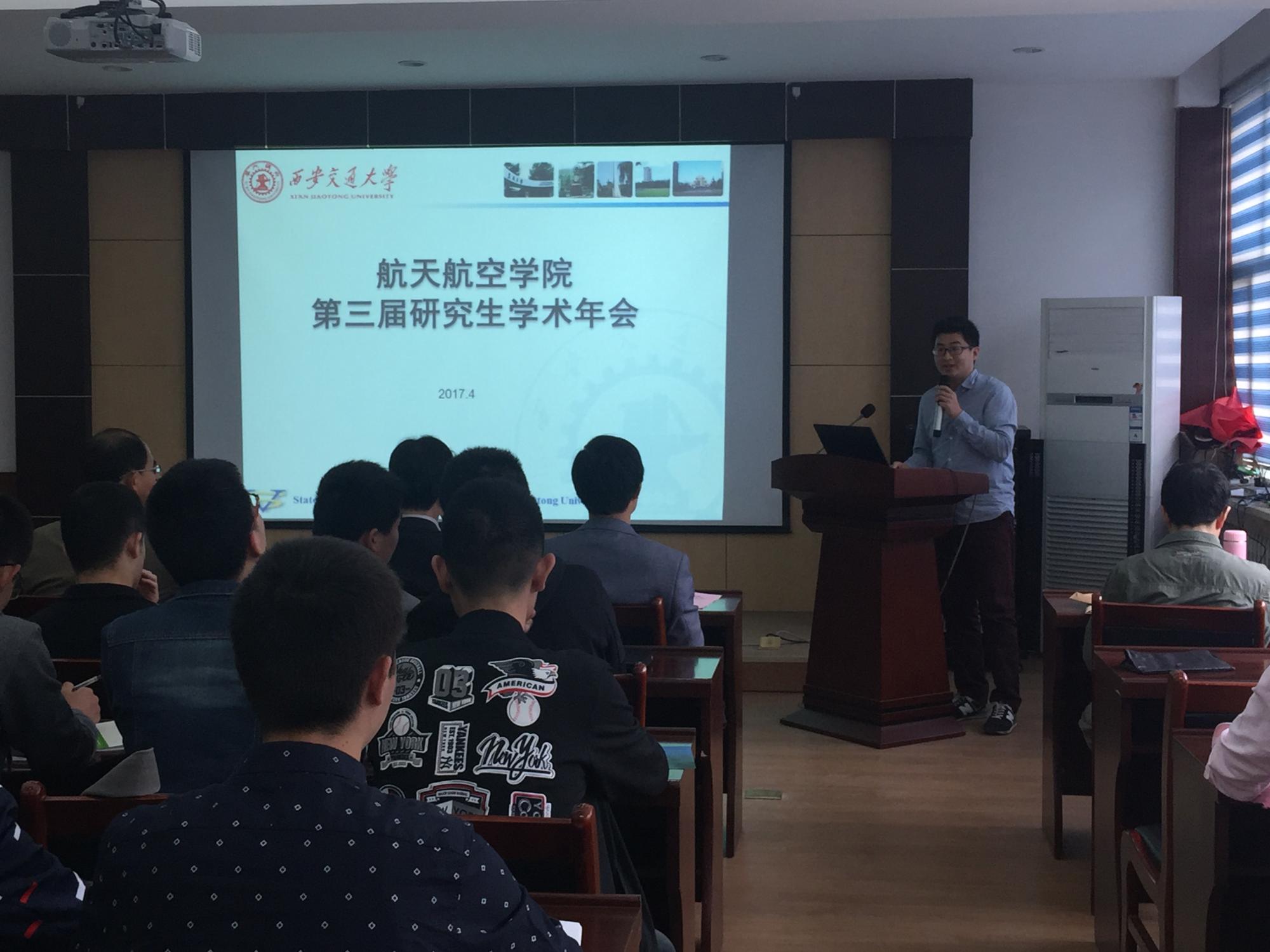 申胜平院长最后讲话,他首先对西工大和空工大的同学们来到交大进行学术交流表示欢迎,他讲到通过学术交流既可以碰撞出更多思想的火花又可以增添深厚的友谊。他希望广大同学们认识到学术报告、学术交流的重要性;希望同学们通过报告展示,抓住要点、核心,呈现逻辑清晰的架构。并祝愿学术年会圆满成功。