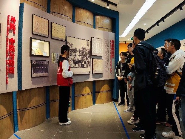 首先同学们进入溯源展厅,该部分讲述了1896年至1955年间交通大学兴学强国的发展历程。同学们怀着无比敬仰的心情了解了唐文治、叶恭绰等历代校长的事迹,以及学校师生们在烽火岁月下的奋进,感受到前辈们在建校伊始为国之教育做出贡献的毅力和决心。