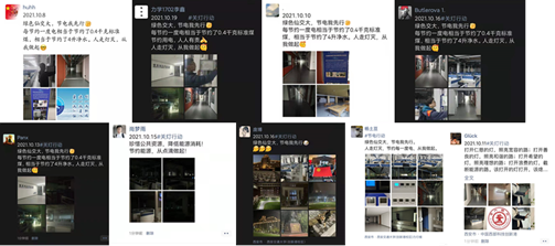 通过在联合团支部内的宣传以及朋友圈打卡每日任务的进行,进一步提高了联合团支部成员及其亲友们的节能意识费。树立节约光荣,浪费可耻的观念,才能保证经济持续发展的后劲以及人与自然的协调发展。到目前为止,虽然没有了朋友圈打卡的任务,联合团支部成员已能够做到人走灯灭的好习惯,无论是教室还是教研室,最后离开的同学总能够关上灯以及空调。