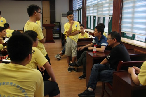 7月6日晚,学院举行茶话会,为营员们提供了与导师面对面交流探讨的平台。茶话会按照学科方向划分为4个小组,老师们通过一对一的方式为营员详细介绍了学科发展、专业特色、师资力量、教学与科研体系等相关情况,并针对同学们关心的专业研究方向、研究生的科研学习生活等方面问题进行耐心解答。老师与同学们面对面促膝而谈,毫无保留地分享自己在科学研究中总结的经验和思路,同学们也热情踊跃地讲述对未来学习和科研的构想和计划。现场交流氛围轻松而热烈。