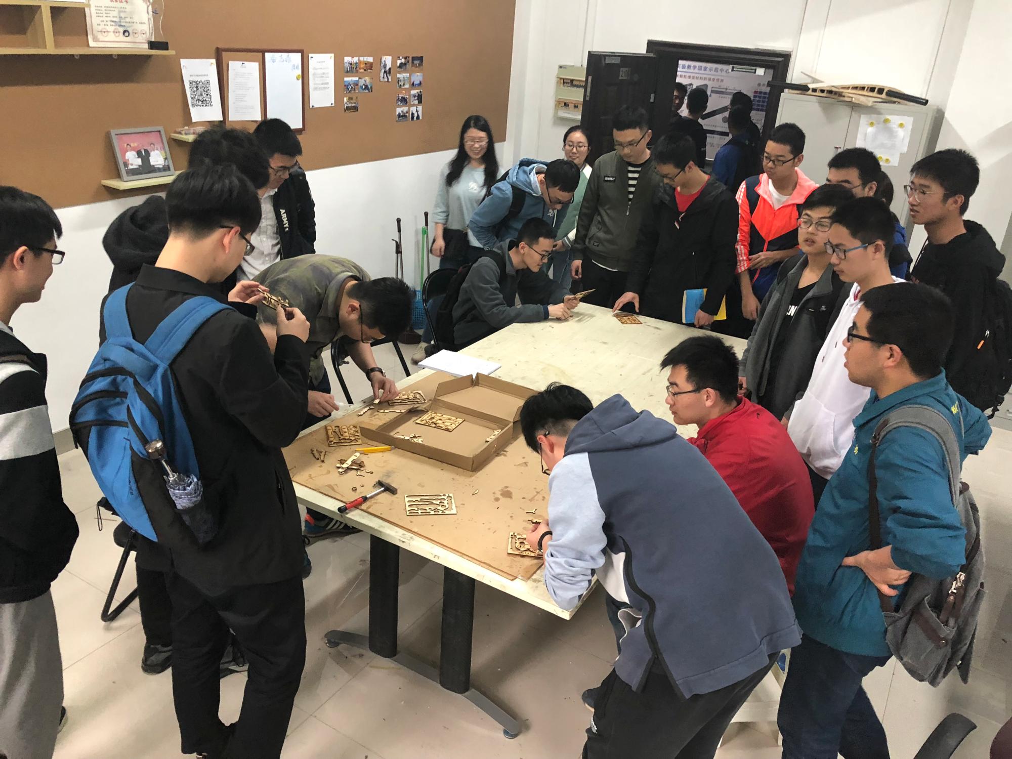 微小型飞行器俱乐部参观,体验动手制作纪念飞行器模型。选取waco机型为原型机,利用事先准备好的CAD图纸,进行原材料切割、组装和固定。最后同时展示实验室自己开发的无人机S900进行视觉跟踪的表演。硕7073郭少杰表示,在微小型俱乐部每天都面对具体的操作和实验准备各类科技竞赛,可以带领感兴趣的同学们了解和体验飞行器感到非常荣幸,希望更多的同学加入到我们这个大家庭来,将所学所长运用到基础的科技实践中,对今后工作中的纵深影响要比想象中大很多。