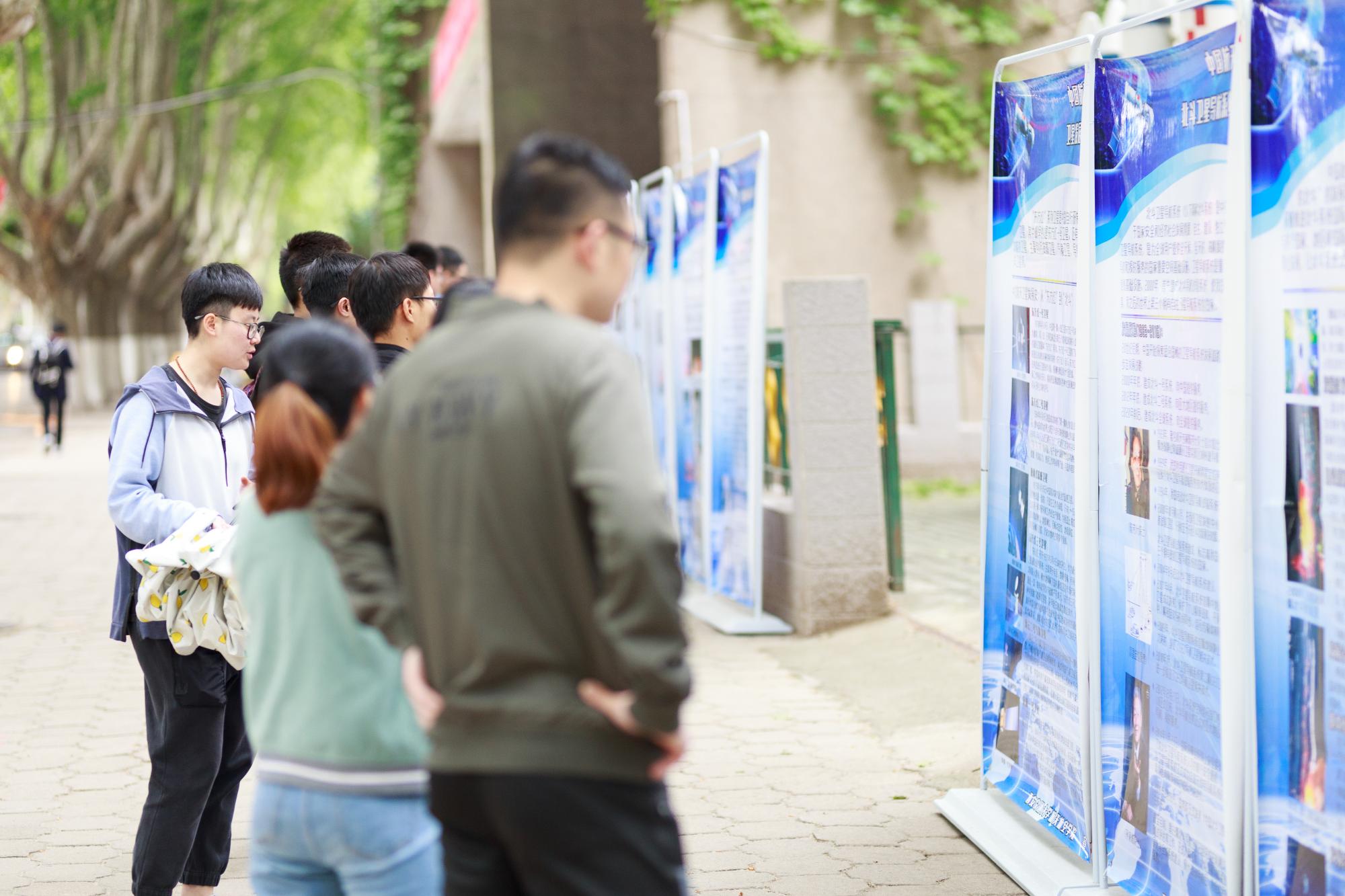 航天知识科普展览以时间为脉络,通过图文并茂的形式展示了古今中外航天科技发展进程,主要分为四个板块:古代航天设想探索,近现代航天发展大事件,航天器演变历史,航天人的贡献与成就。展览以世界航天发展时间表为主线,突出描绘中国航天发展影响,以期达到普及航天知识的目的。硕6054李春玲谈到,零散的航天知识被串联起来,更加系统的感受到航天事业短短60余年对人类发展带来的的巨大变化,不仅震撼了我的视听,同时引发我对自己人生规划的思考,未来航天发展的重担落在我们这一代人身上,如何实现超越和突破,并没有看起来这么简单,在这里突然明白了航天精神的意义和价值。