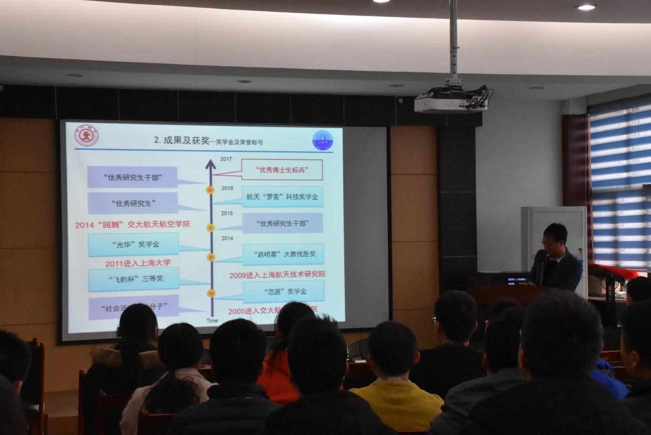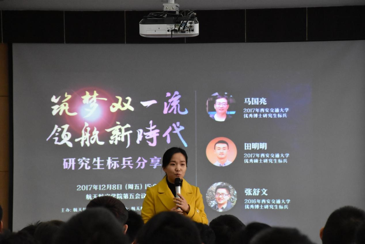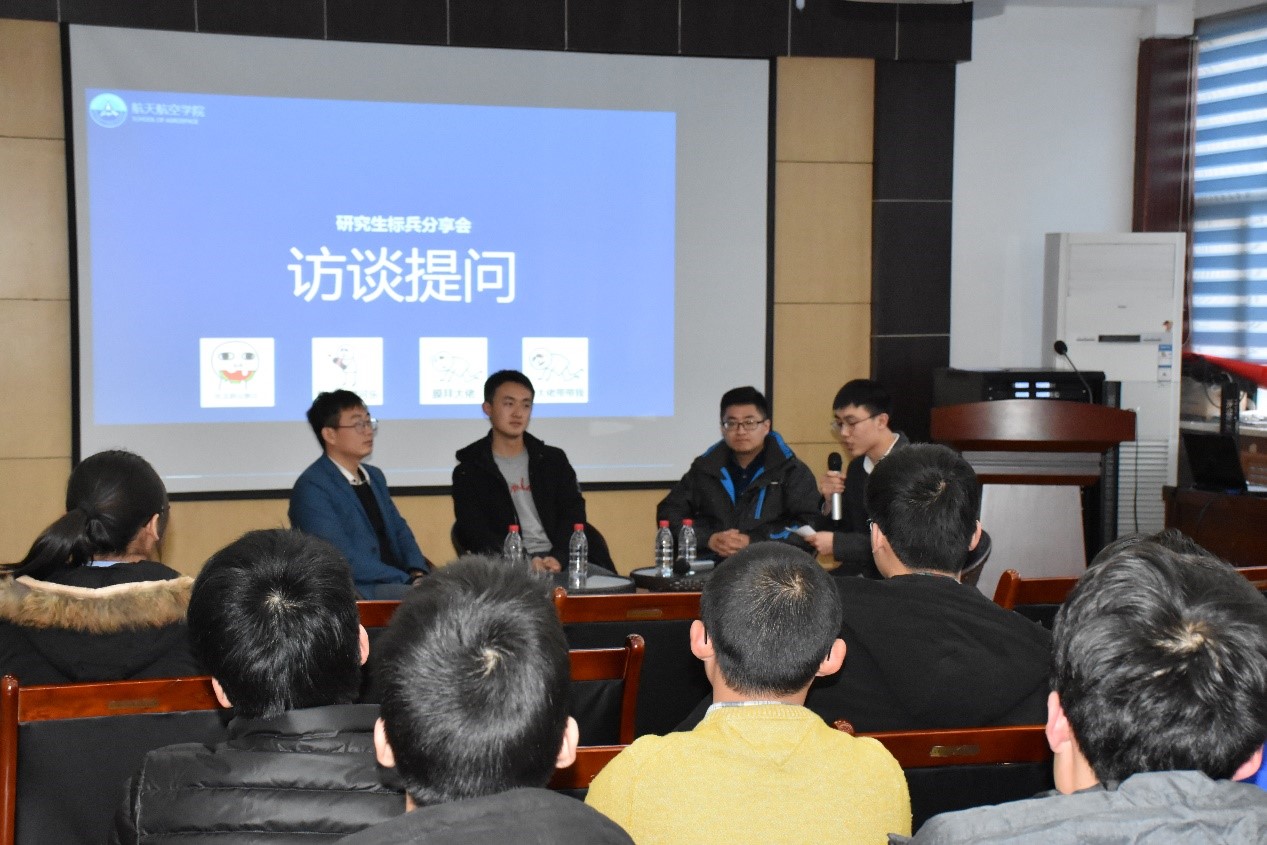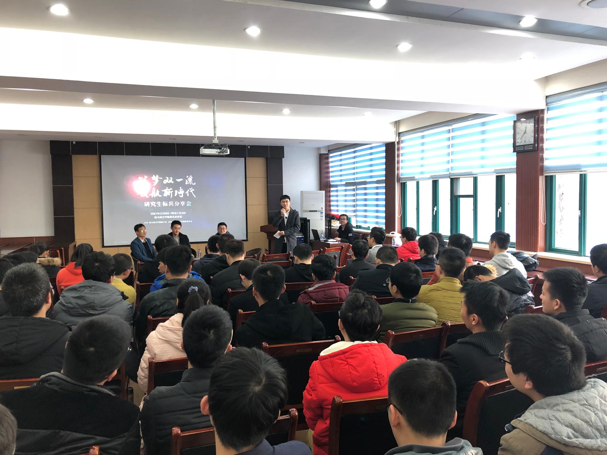 教一楼第五会议室举行。本次分享会邀请到2017年度优秀研究生标兵获得者、航空宇航专业博士马国亮,2017年度优秀研究生标兵获得者、航空宇航专业硕士田明明,2016年优秀研究生标兵、航空宇航专业博士张舒文三位同学为大家分享成功经验。出席本次活动的有研究生辅导员李昱静老师、2017级博士、2016级硕士以及2017级硕士,分享会由2016级硕士范永晨主持。