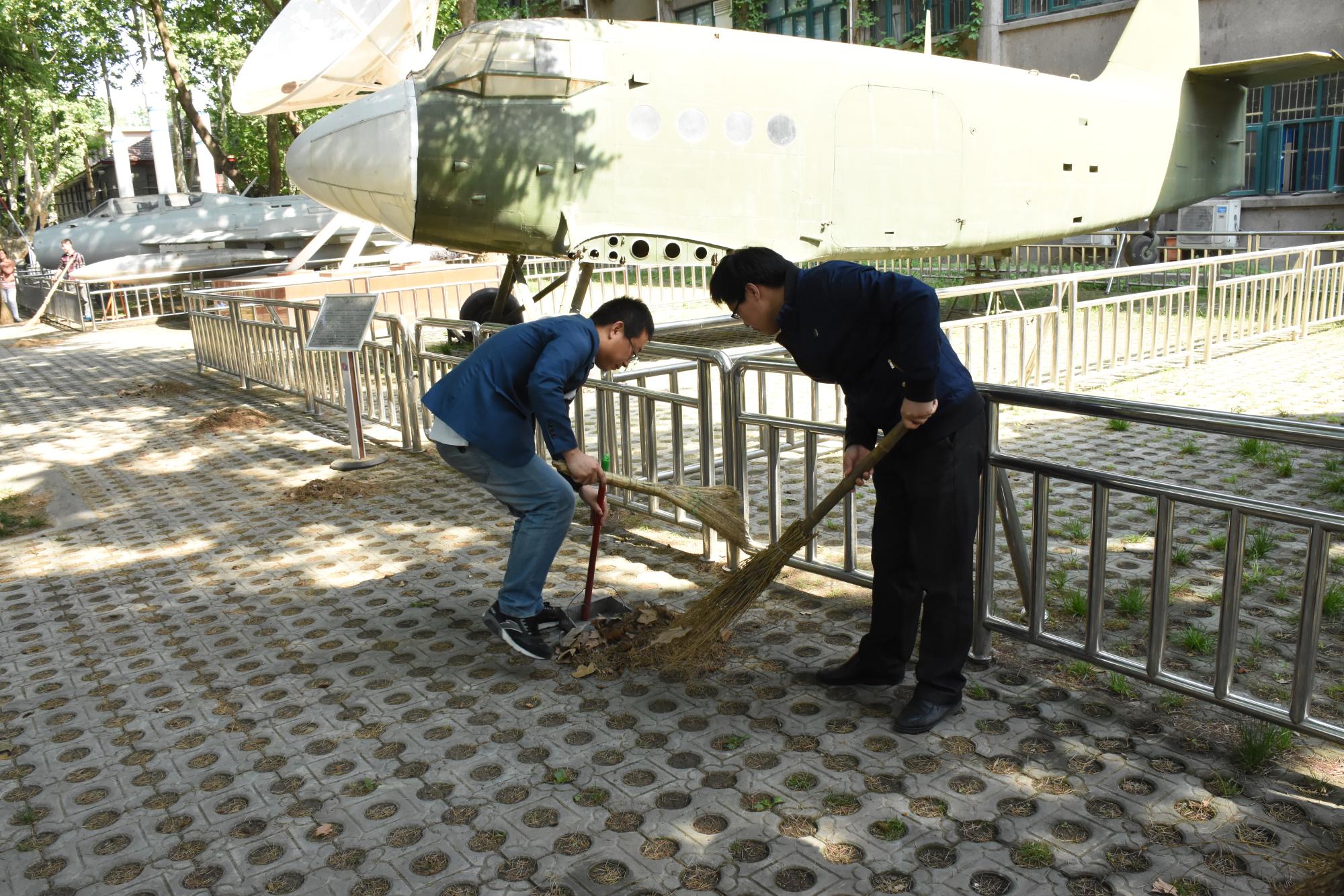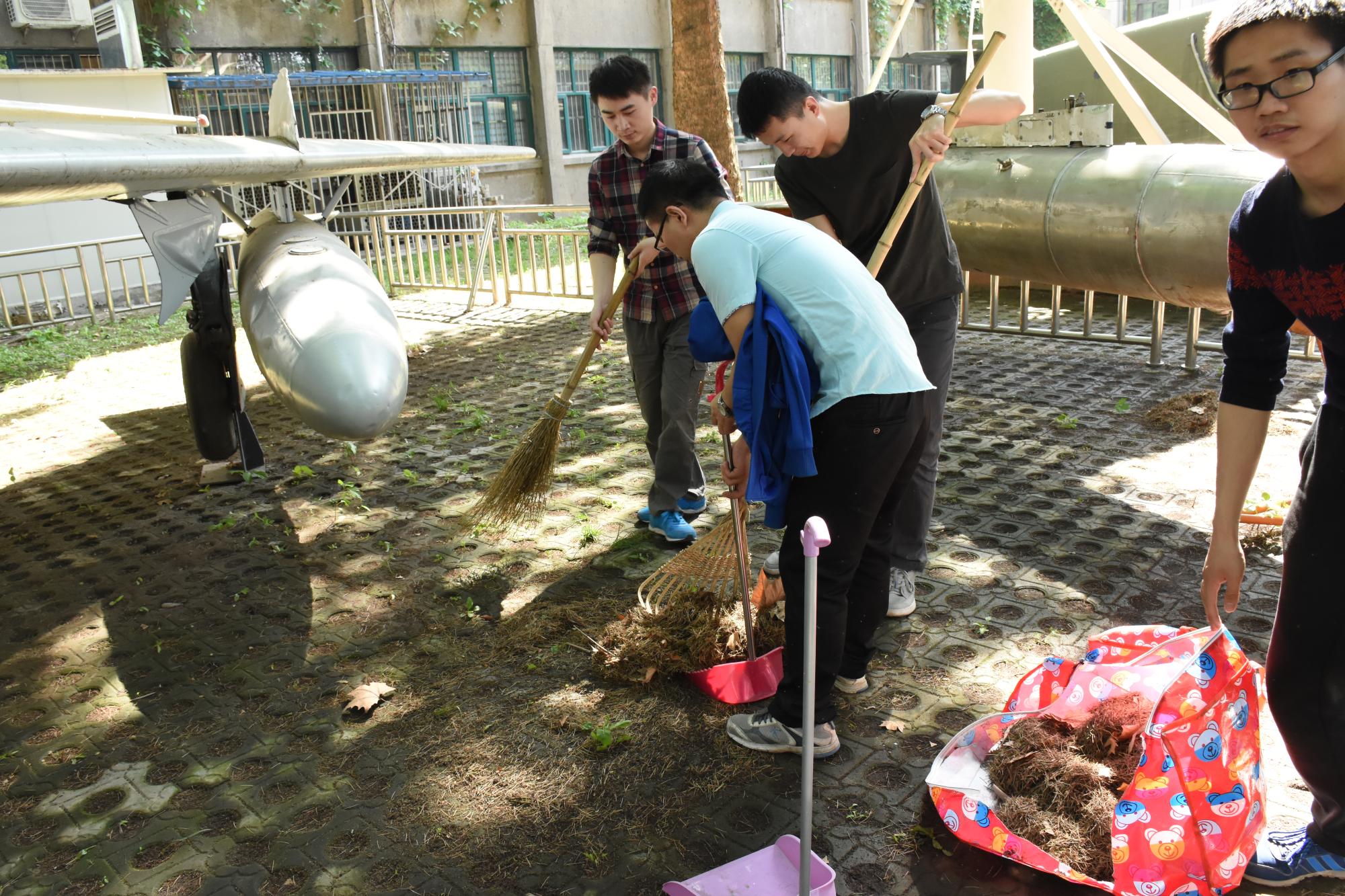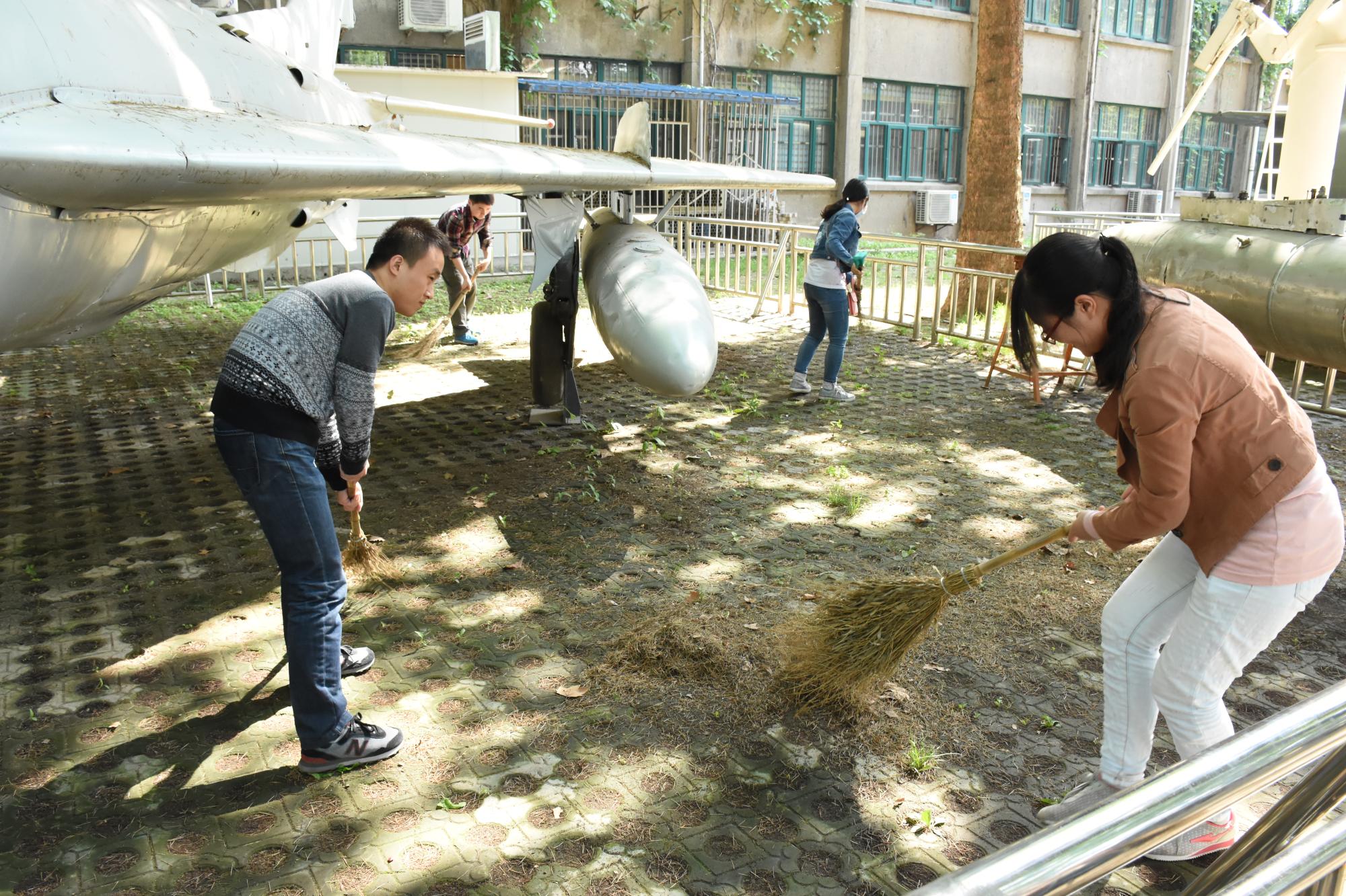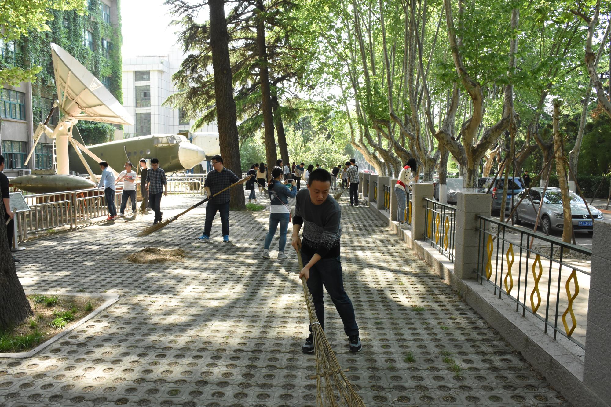 师生们在约定的时间齐动手,热火朝天地开始了全院卫生大扫除。学院各系、室、中心的教职工们对学院楼内办公区和其他公共区域进行了清扫。学院各学生党支部在学院党委副书记陈永华老师的带领下合作完成了学院南侧“小停机坪”、教一楼东侧外围、南侧外围和西侧外围区域的清扫工作。大家或是用扫帚、或是用耙子,将草坪上的枯叶扫成小堆,细心的同学们还清理了飞机下方、机翼上一些平时易忽略的地方掉落的树叶、树枝,不但清扫了学院楼宇周围的路面,还认真地将花坛里掉落的树叶和杂物一点一点捡了出来。