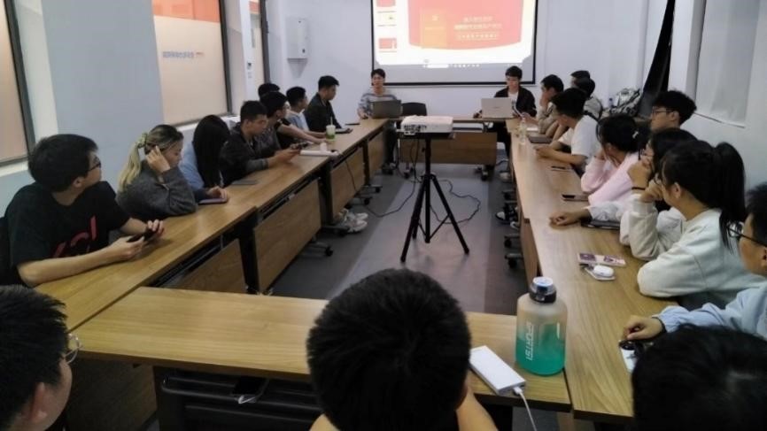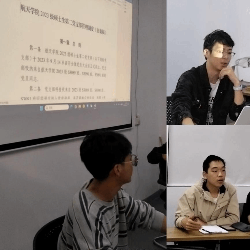 2023级硕士生第二党支部在力行楼2-5089召开9月份组织生活会,学习党章总纲并讨论党支部的各项规章制度,支部全体党员同志出席会议。