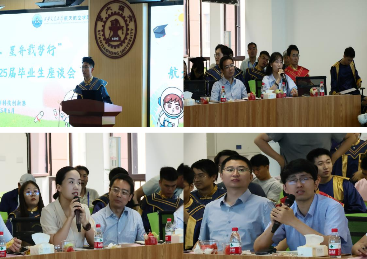 交流环节,毕业生代表们踊跃发言,深情回顾了在航院求学的点点滴滴。多位同学结合自身学习体验,就培养方案、就业引导、管理保障等方面提出了建议。学院领导与教师代表们认真聆听、细致回应每一位毕业生的发言。