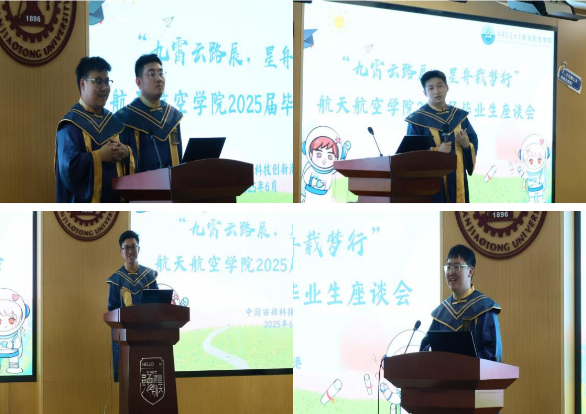 院长申胜平、党委书记张爱萍、党委副书记李昱静、副院长张虎、工程力学系主任徐光魁、空天工程系副主任夏巍、研究生教学秘书王清漪、辅导员王若宜出席座谈会,2025届毕业生代表齐聚一堂,共话成长、展望未来。座谈会由学院团委书记、辅导员李宇辰主持。