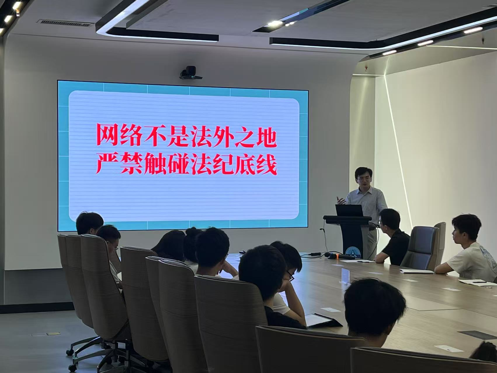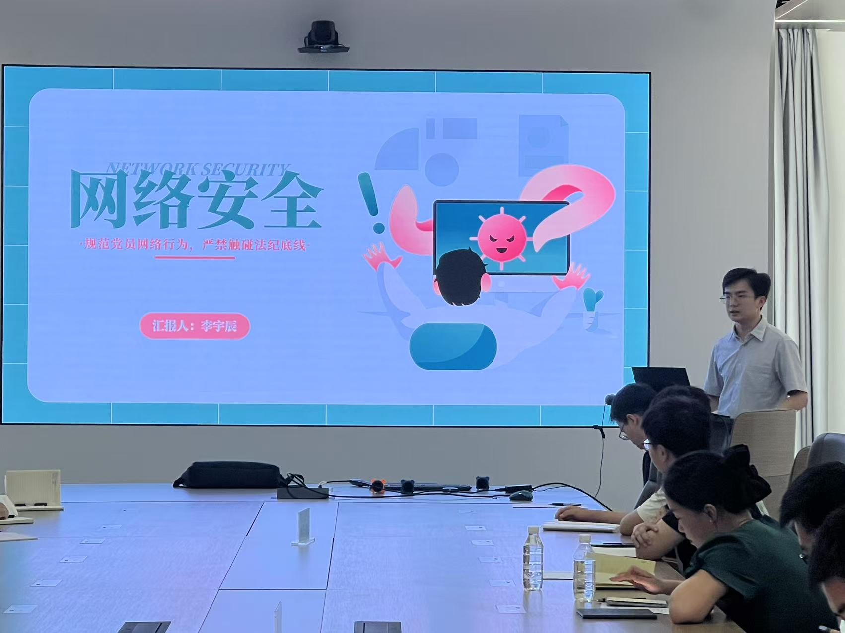 李宇辰重点围绕网络安全展开近期重点工作通报。他深入分析了当前网络安全形势,指出随着互联网普及,网络安全风险日益突出。李宇辰详细剖析了常见网络诈骗手段、个人信息泄漏风险等具体问题,提出了针对性防范建议。他特别强调,党支部书记在日常工作中必须高度重视网络安全教育,要积极引导党员和同学们切实增强安全意识,有效保护个人安全,筑牢网络安全防线。