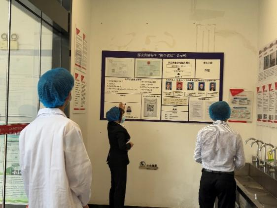 代表们在食堂管理团队引导下,严格按照规范穿戴卫生防护服,系统参观了食堂功能分区。宣传栏集中公示了“十统一”管理制度与“六到位”规范措施,并详细列出当日食材进货来源、供应商资质及检测报告,实现全流程可追溯。在验货区,工作人员讲解了专业查验制度,确保食材安全准入。