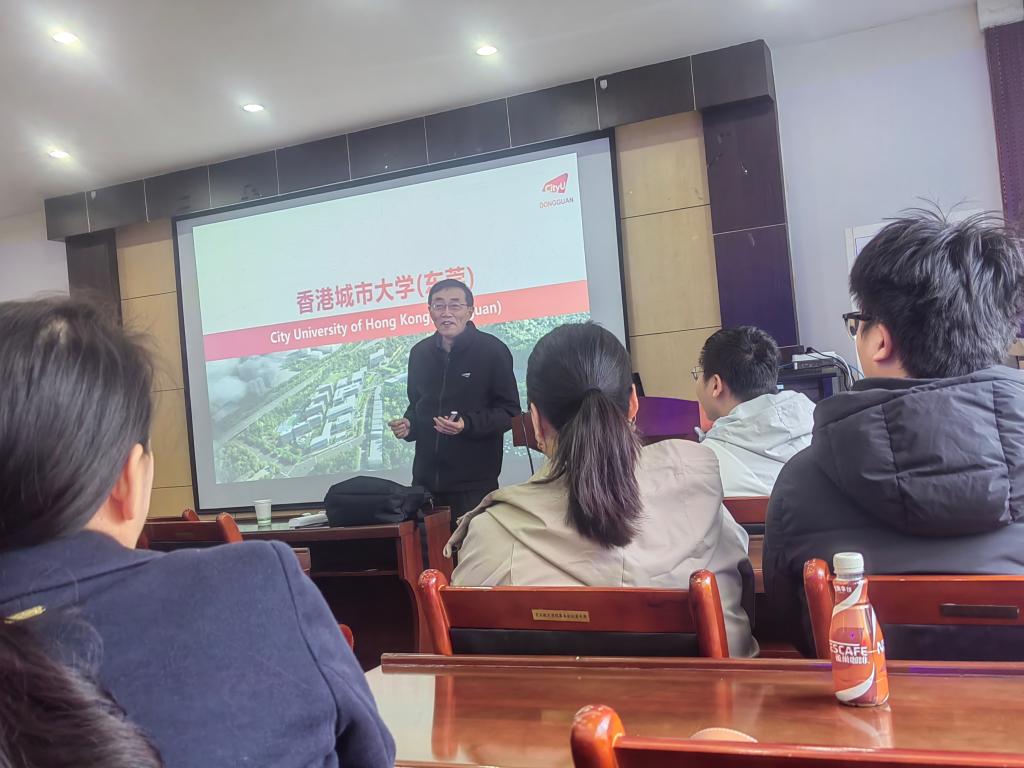 为助力本科生实现多元渠道研究生升学发展,进一步唤醒国际化交流意识,2月27日,91porn 举办本科生港校硕士招生宣讲会。香港城市大学(东莞)副校长刘子顺教授一行来院宣讲交流。来自学院各年级学生代表参会交流。本次活动由91porn 学工会及91porn 文治书院师生联合党支部承办。