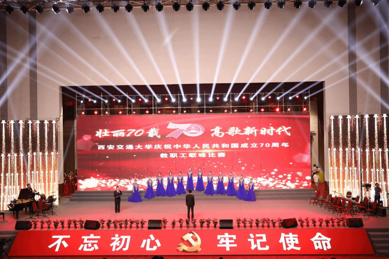 参赛曲目的表演,黄莺、车春莉等十二位学院教工组成的女声小合唱《青春舞曲》,呈现在9月29日晚思源活动中心庆祝新中国成立70周年教职工歌咏比赛的舞台上。