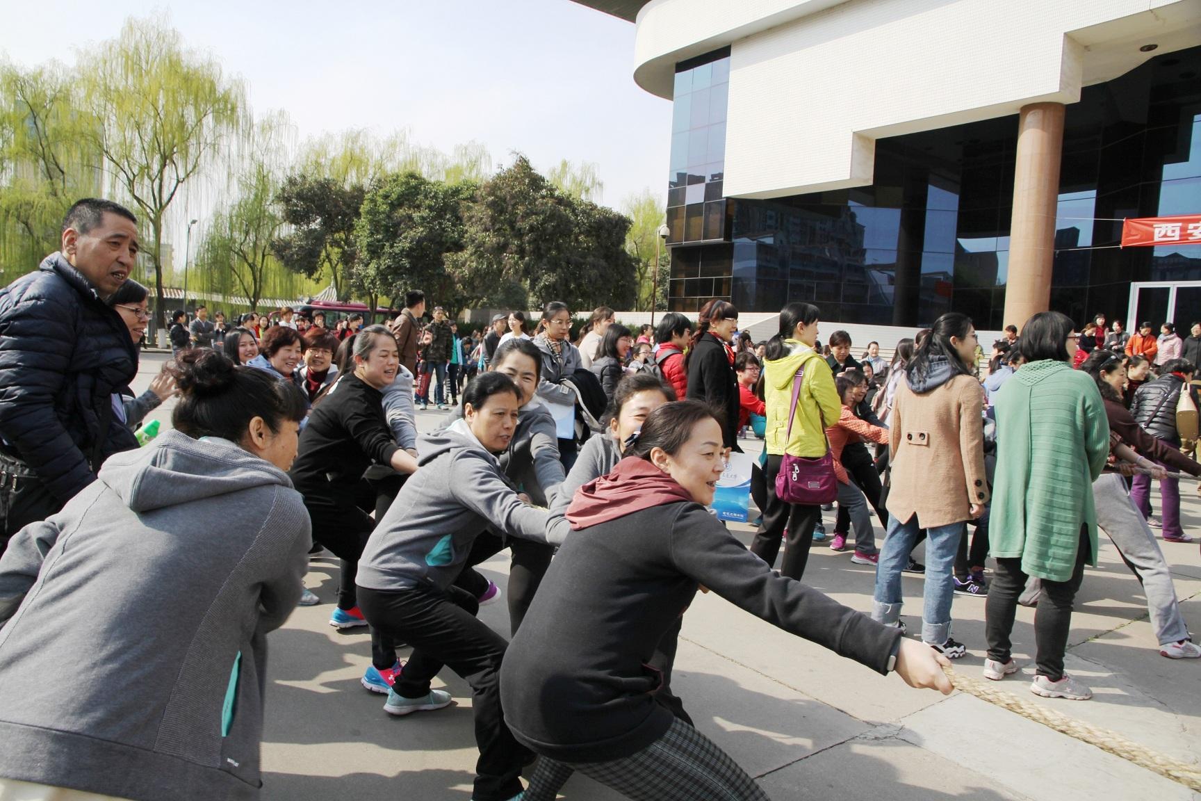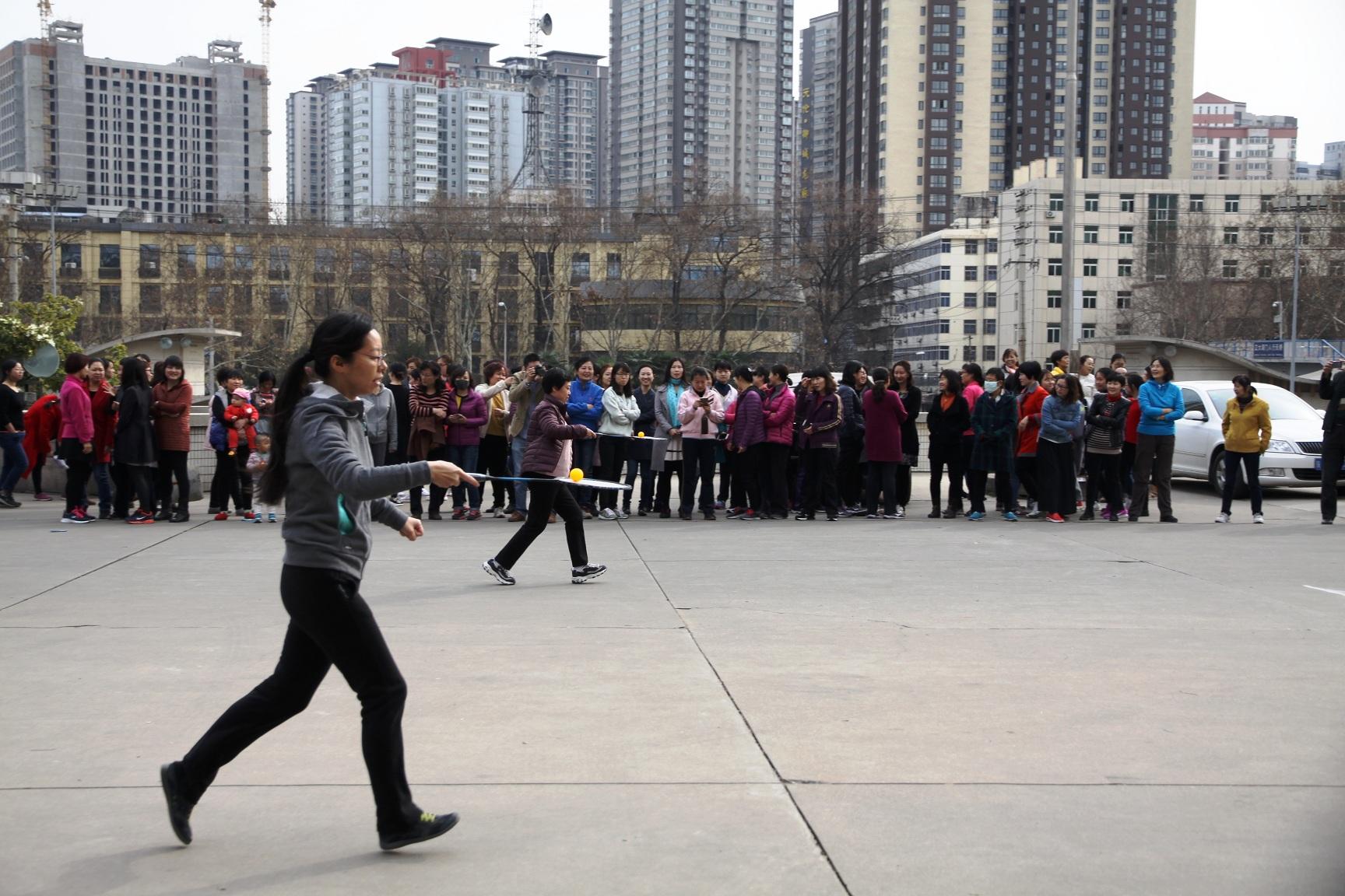 3月6日下午,校工会在思源活动中心南广场举办了庆“三八”女教工趣味运动会,全校共有29个分会900多人参加了比赛。我院女教工在活动中创造了历史最好成绩,四个比赛项目全部进入前八名,其中托乒乓球跑(6人)获得第五名,一分钟踢毽子(5人)获得第七名,双人背对背夹排球接力(12人)获得第八名,10人拔河获得并列第五名。大家在运动中获得了快乐,在集体活动中增进了友谊。这正是三月春风暖,趣味运动欢,友谊润心田,航院勇争先。