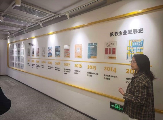 当日校友走访结束后,又来到帆书上海总部,详细了解了企业发展史,张爱萍对帆书一直以来的支持表示感谢,帆书文旅业务负责人耿锟也表示接下来将在更多领域与学校开展合作。