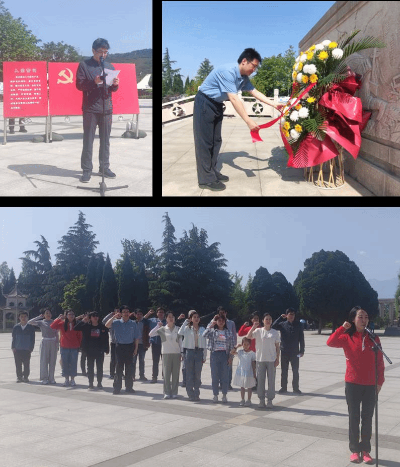扶眉战役纪念馆是为纪念在扶眉战役中壮烈牺牲的3000多名解放军指战员而修建的一处纪念设施,安葬着2160名烈士的忠骨,是国家级烈士纪念设施、全国爱国主义教育示范基地。在鲜红的党旗下,在庄严肃穆的扶眉战役烈士纪念碑前,全体党员代表庄严肃立。由计算力学党支部书记罗亚军主持纪念活动,学院党委委员刘振同志为敬献的花篮整理缎带,全体党员鞠躬表达了对革命先烈们的深切缅怀和崇高敬意。在院办党支部书记陈妮同志的领誓下,大家高举右手,面对鲜红党旗,重温了入党誓词,用铮铮誓词铭初心、恪承诺。