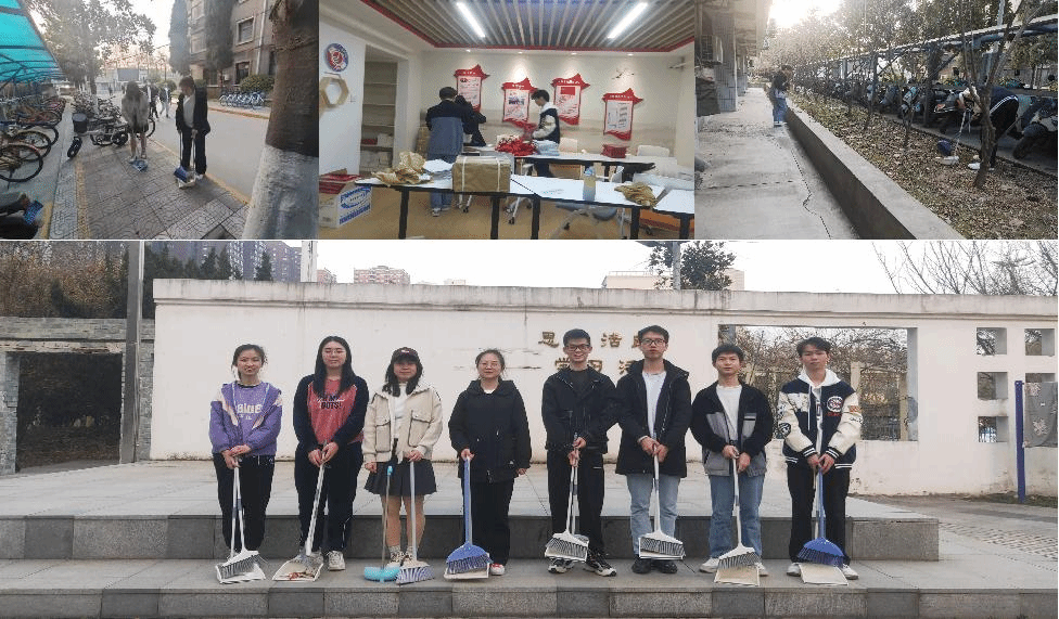 文治书院师生联合党支部党员围绕教一楼周边以及书院相关公共卫生区域开展清扫活动,积极助力营造干净舒适的校园环境;