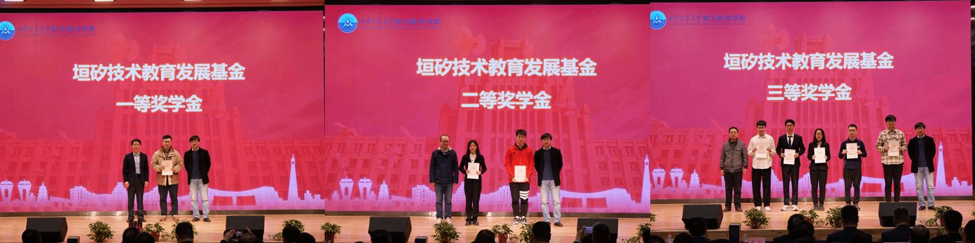 接着参会领导和嘉宾为“中国航天基金会-启明航天奖学金、垣矽技术教育发展基金、朱继梅教育发展基金、沈亚鹏教育发展基金的获得者颁奖并合影留念。