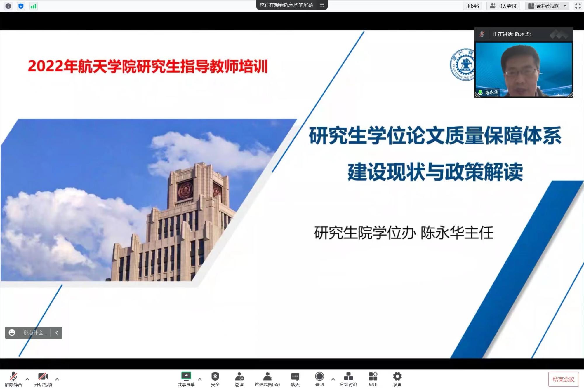 首先,陈永华主任就全校研究生学位论文质量保障体系建设现状与政策进行了解读。陈永华围绕学位授予、学位论文抽检及警示案例、《91porn