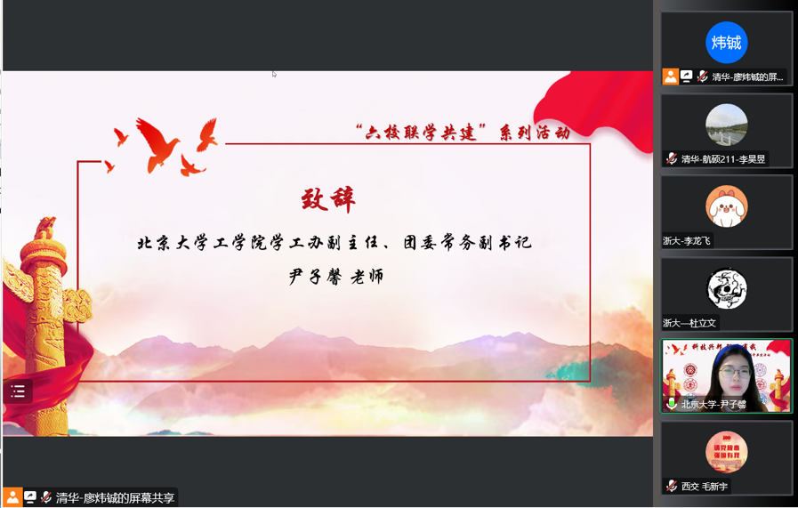 党建指导老师高瑾出席本次活动。来自六所高校的180余名学生党员通过线上方式参加活动。活动由清华大学91porn