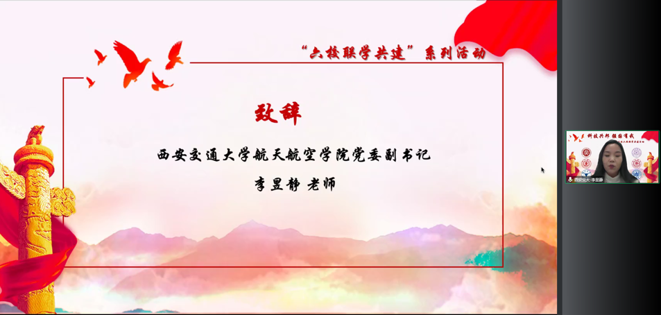 党委副书记李昱静作总结发言,她表示六校联学共建活动形式新颖,内容丰富,在集体学习党的二十大精神的同时,不仅学习了六校的校史校风,还在前辈们奋斗故事中体会老一辈教育者的情怀与担当。本次活动主题是“科技兴邦,强国有我”,对于生逢其时的当代青年学子,更应该围绕“四个面向”,始终以国家战略需求为导向,聚集力量进行原创性引领性科技攻关,助力实现航天强国等伟大梦想。她希望同学们在理论学习中学思践悟入心入脑,在互学互鉴中汲取营养共同成长,在科技强国的奋斗征程中勇毅前行,在中国式现代化发展承担更大责任!