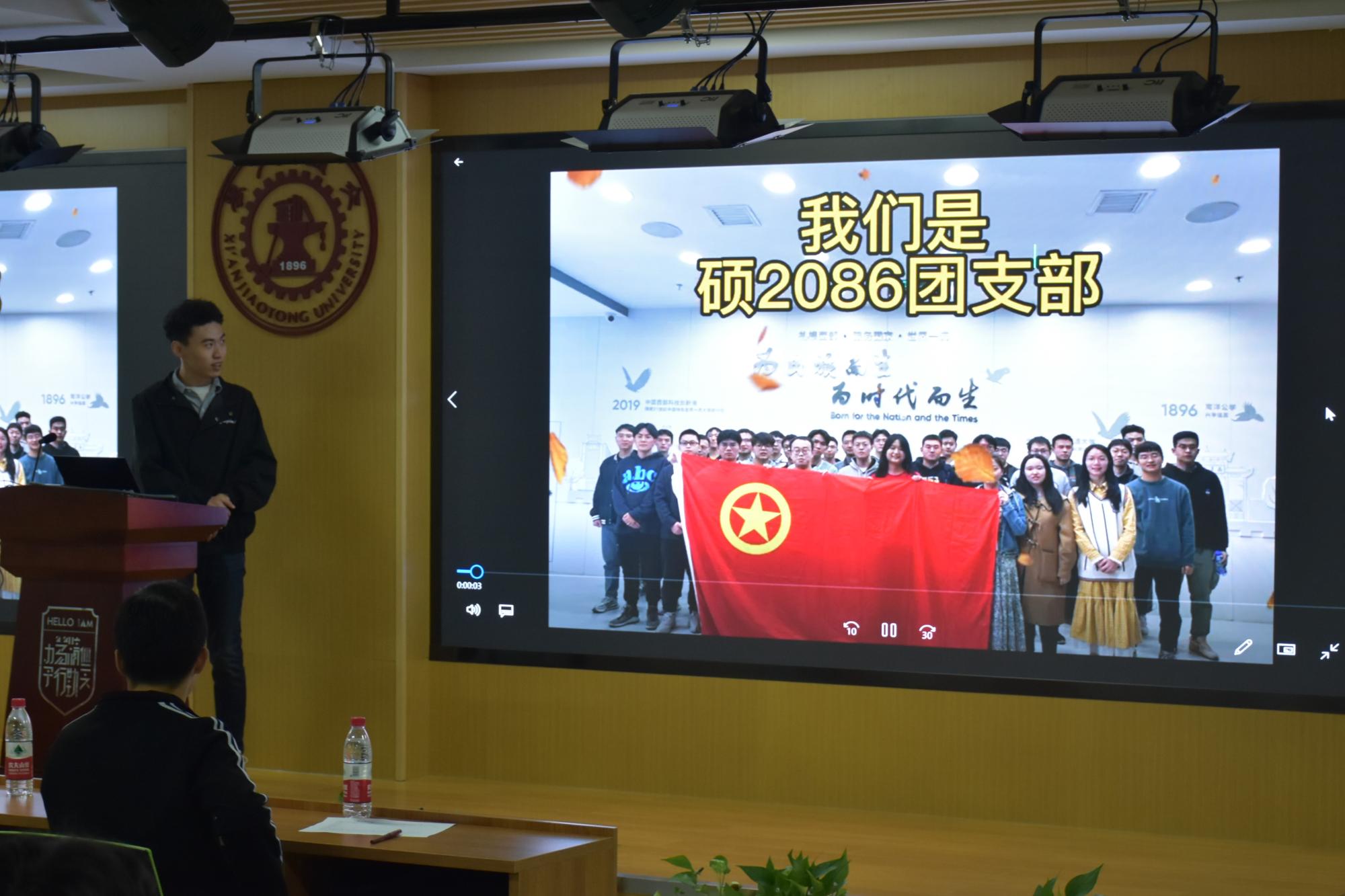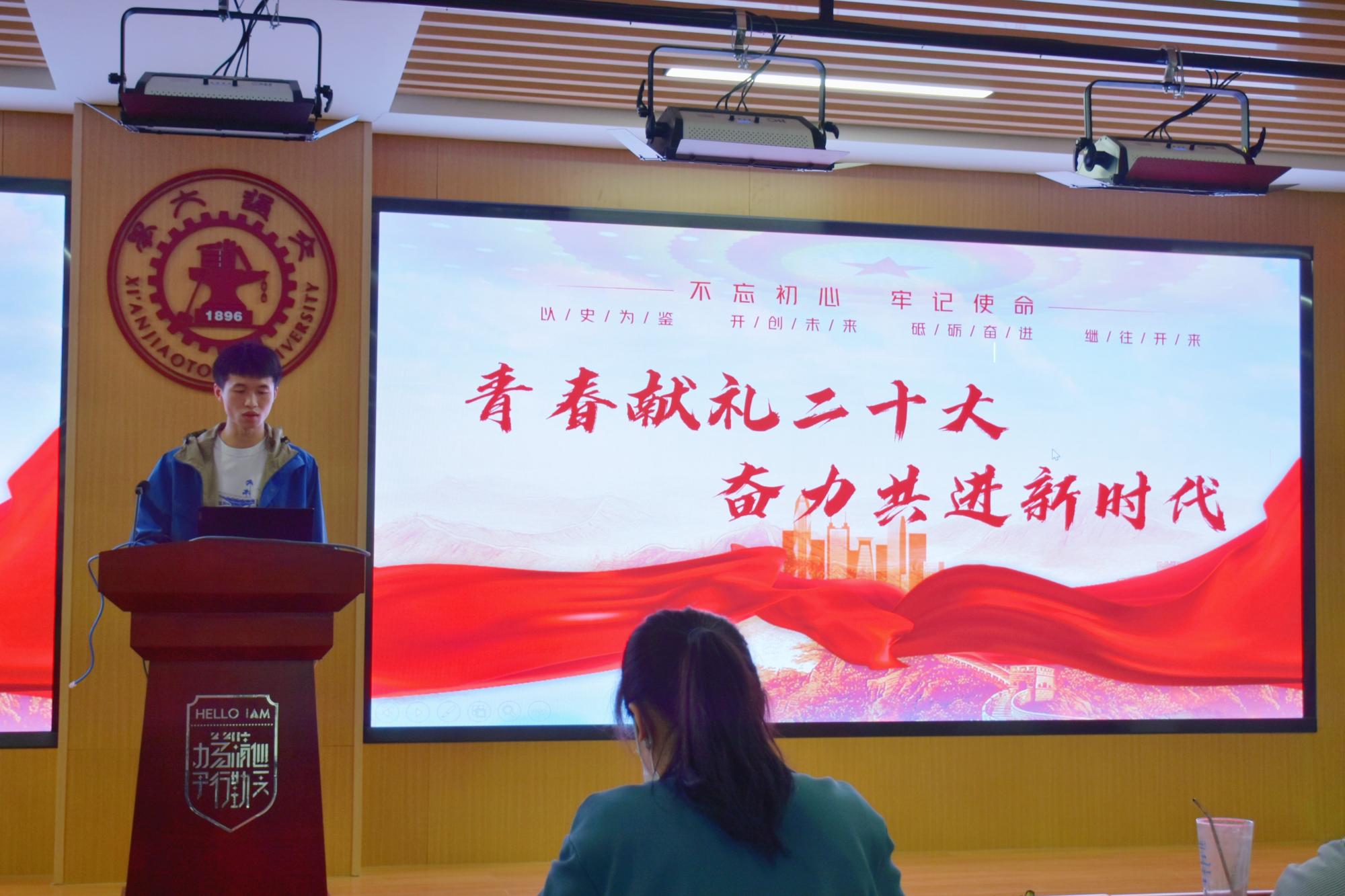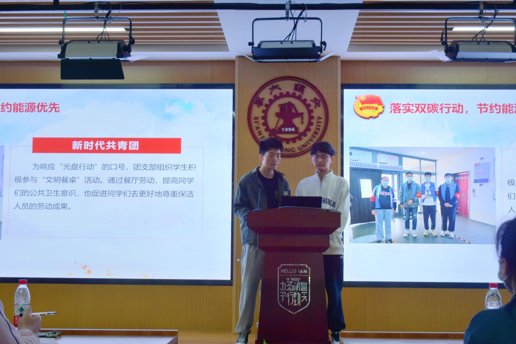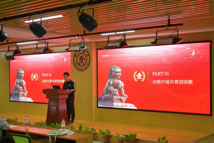 活动在激昂的中国共青团团歌中开启,全体师生起立共唱团歌,会议室中充满了青春的活力与热情。随后各支部依次开始现场答辩。