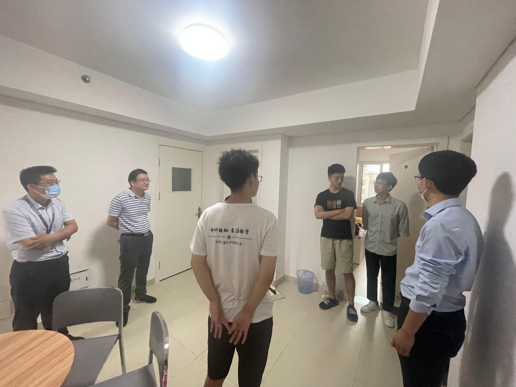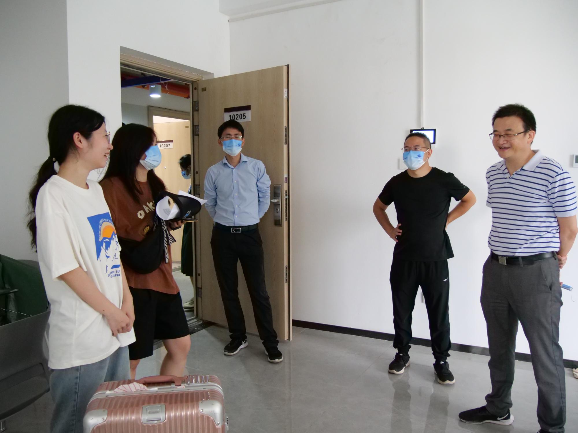 院长申胜平,党委副书记陈永华,院长助理张虎,团工委书记、研究生辅导员李昱静,导师代表梁旭以及研究生兼职辅导员分别在创新港南区公寓和朗园研究生宿舍走访慰问2022级研究生新生。