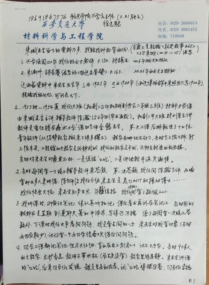 李小跃书记代表学院师生为胡奈赛教授送上鲜花,表达了对胡老师的敬意和感谢。对于此次采访胡老师精心准备了4页手写稿,包含了关于朱城先生的10条西迁小故事。她首先生动而细致地追忆了69年前学习材料力学时的情景,谈到自己对朱城先生的印象非常深刻,朱先生当时担任机械制造系二年级乙班的材料力学大课老师,授课深入浅出、引人入胜。胡教授特别强调了朱城先生的启发式教育是从“无知”到“有知”再到“无知”,帮助同学们打开了材料力学的丰富世界。胡教授以精彩而富有深意的西迁小故事呈现了西迁老教授严谨而幽默的授课形象,使参会师生对西迁老教授的学者风范与育人情怀有了更深的认识。