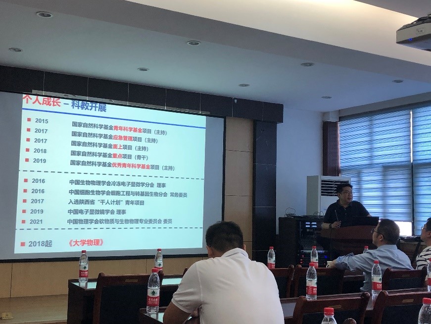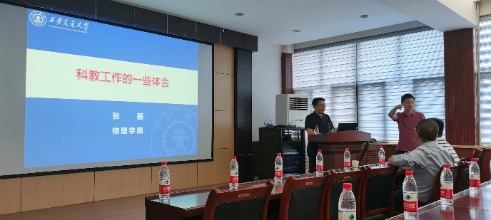 高层办副主任兼人力资源部副部长、物理学院张磊教授受邀为青年教师做报告。学院副院长卢同庆教授主持会议,40余位青年教师参加了本次会议。