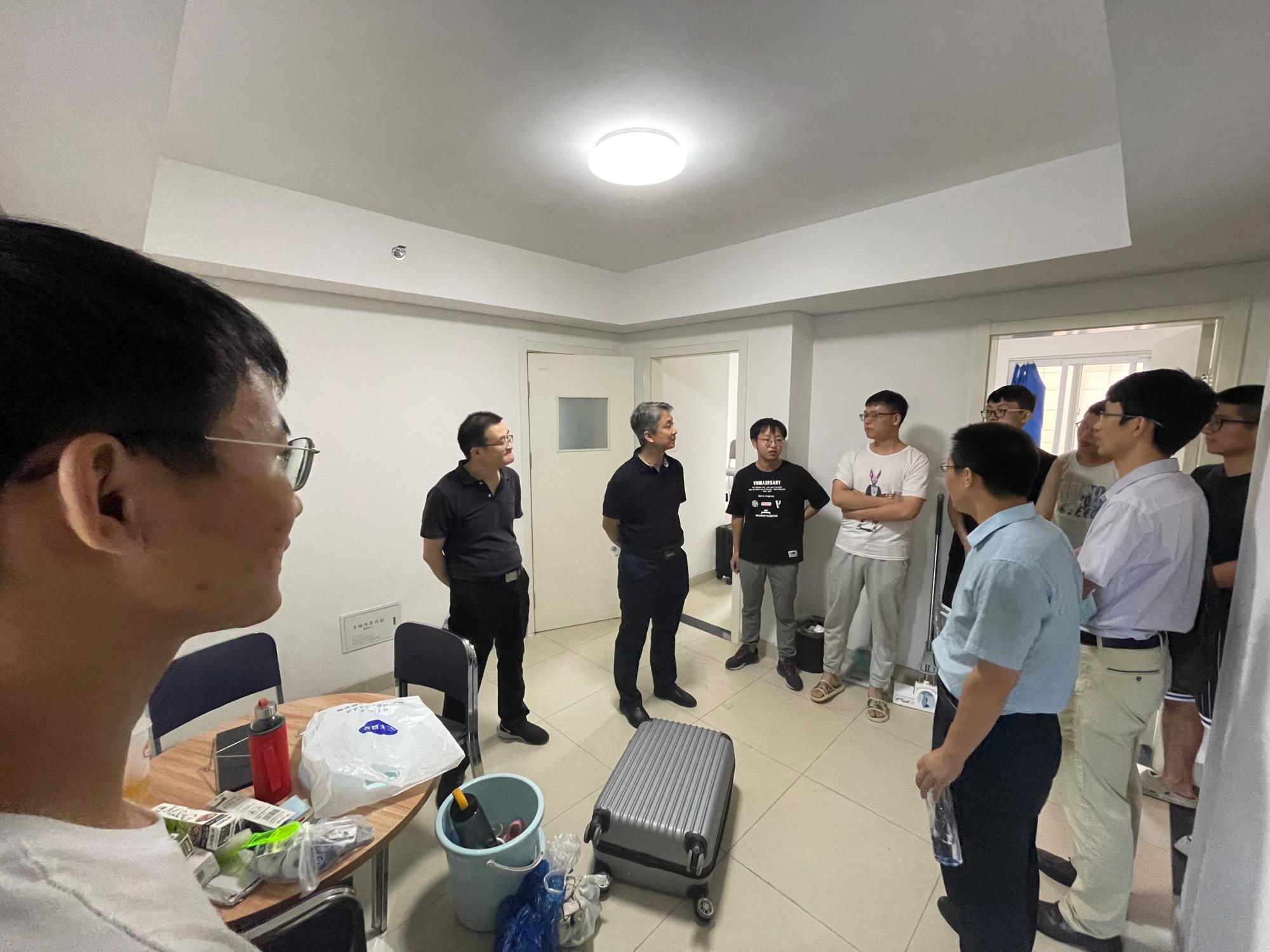 院长申胜平,党委书记李小跃,副书记陈永华,院长助理张虎,团工委书记、研究生辅导员李昱静在创新港朗园研究生宿舍走访慰问2021级研究生新生。