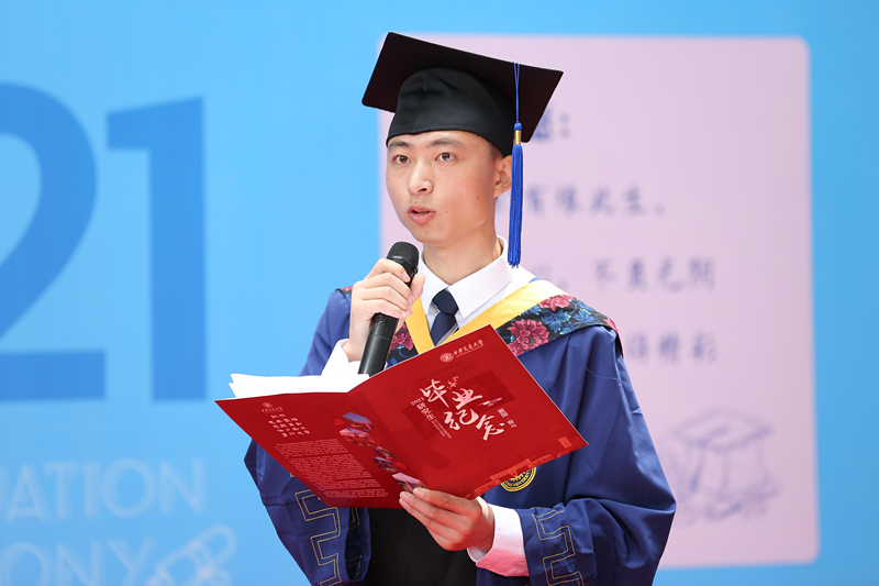 继续深造。他代表2017级全体本科生向四年来给予以悉心指导的老师献上崇高的敬意,谈到:“看到天问一号在火星留下中国足迹;神舟十二号逐梦苍穹,航天员入住太空等等成就,我感到无比自豪,所学不再是书本的知识,而是化作燃烧青春,为国所用的豪情与底气。我将继续在科研中坚守初心,砥砺前行!”