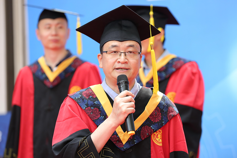 申胜平院长为毕业生送上寄语。他指出,“100年前平均年龄28岁的共产党创始人勇于创新、善于合作、甘于奉献,为国家民族发展开创出一片新天空。希望同学们赓续共产党人精神血脉,一要勇于创新,‘且将新火试新茶,诗酒趁年华’,在自己最好的年华里勇于创新,善于探索,敢为人先;二要善于合作,只有团结合作才能形成合力,才能在事业上不断走上新的高峰;三要甘于奉献,胸怀“国之大者”,心中有大局,在人生路上‘一点浩然气,千里快哉风’。”申胜平院长鼓励毕业学子,“征途漫漫,唯有奋斗!只有天空才是你们的极限,祝福你们越飞越高!”