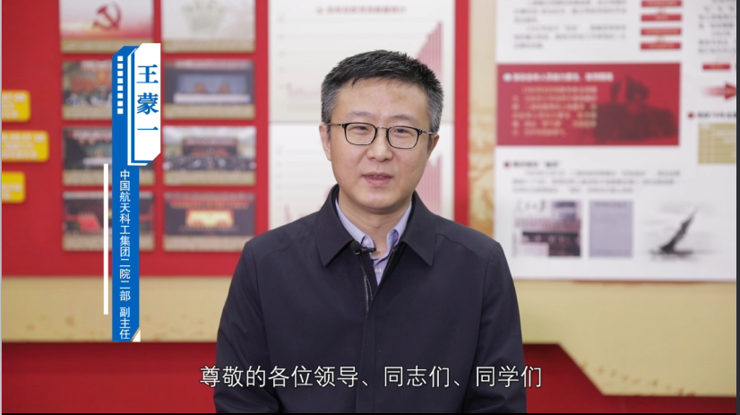 中国航天科工集团二院二部副主任王蒙一通过视频致辞,他讲到我国航天事业从无到有,从艰难的自主研发到如今成为走向世界的一张名片,无不体现独立自主、艰苦奋斗的爱国奋斗精神。交大与航天科工二院具有深厚的渊源和缘分,交大培养出了多位我国导弹事业的开拓者和奠基人。一个甲子以来,探索浩瀚宇宙、发展航天事业、建设航天强国,是我们不懈追求的航天梦。“西迁精神”和“航天三大精神”交相辉映,王主任对交大表示衷心的感谢,希望交大与航天科工二院合作不断拓展、深化,并预祝航天日活动顺利开展,期望交大取得更大进步。