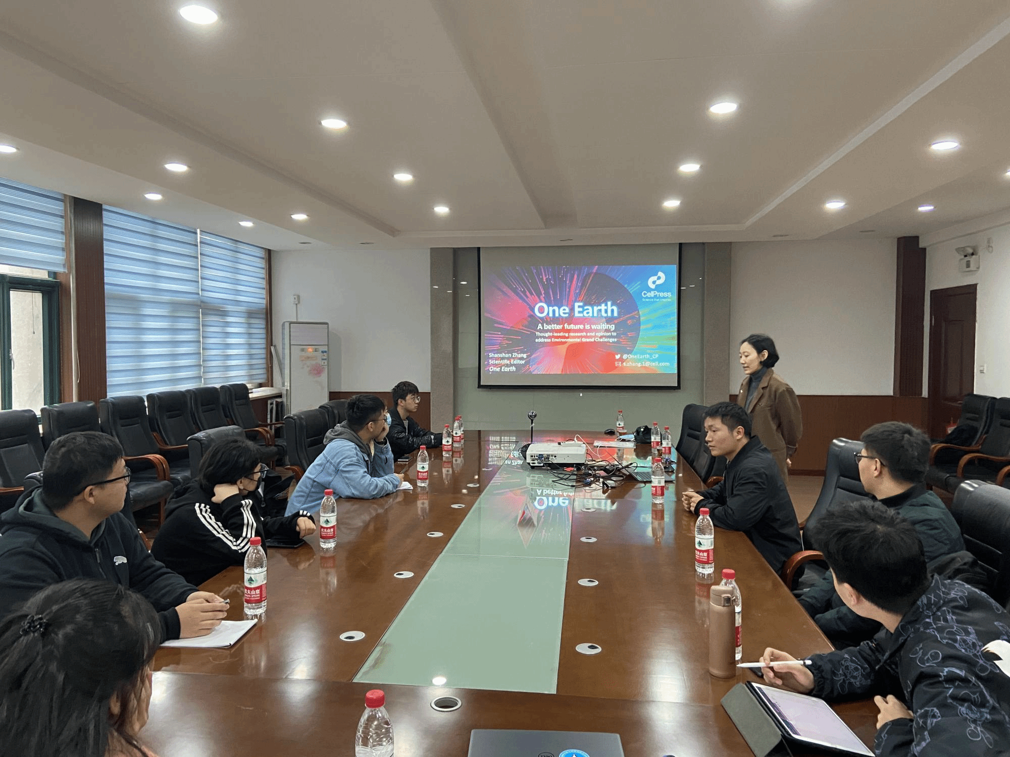在见面会中,张博士首先介绍了Cell Press 环境科学旗舰刊One Earth 的发展历程与期刊定位,通过回顾出版的代表性文章,从语言表达、行文逻辑、创新性、重要性等方面详细阐述了顶刊论文的写作技巧与投稿要点,为高水平期刊论文发表提供了思路。