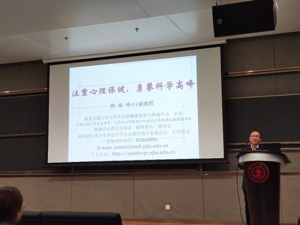 心理咨询中心主任姚斌老师作为主讲人,讲座题目为《注重心理保健,勇攀科学高峰》。本次讲座旨在向广大研究生宣传普及心理健康知识,全方位加强研究生心理健康教育。