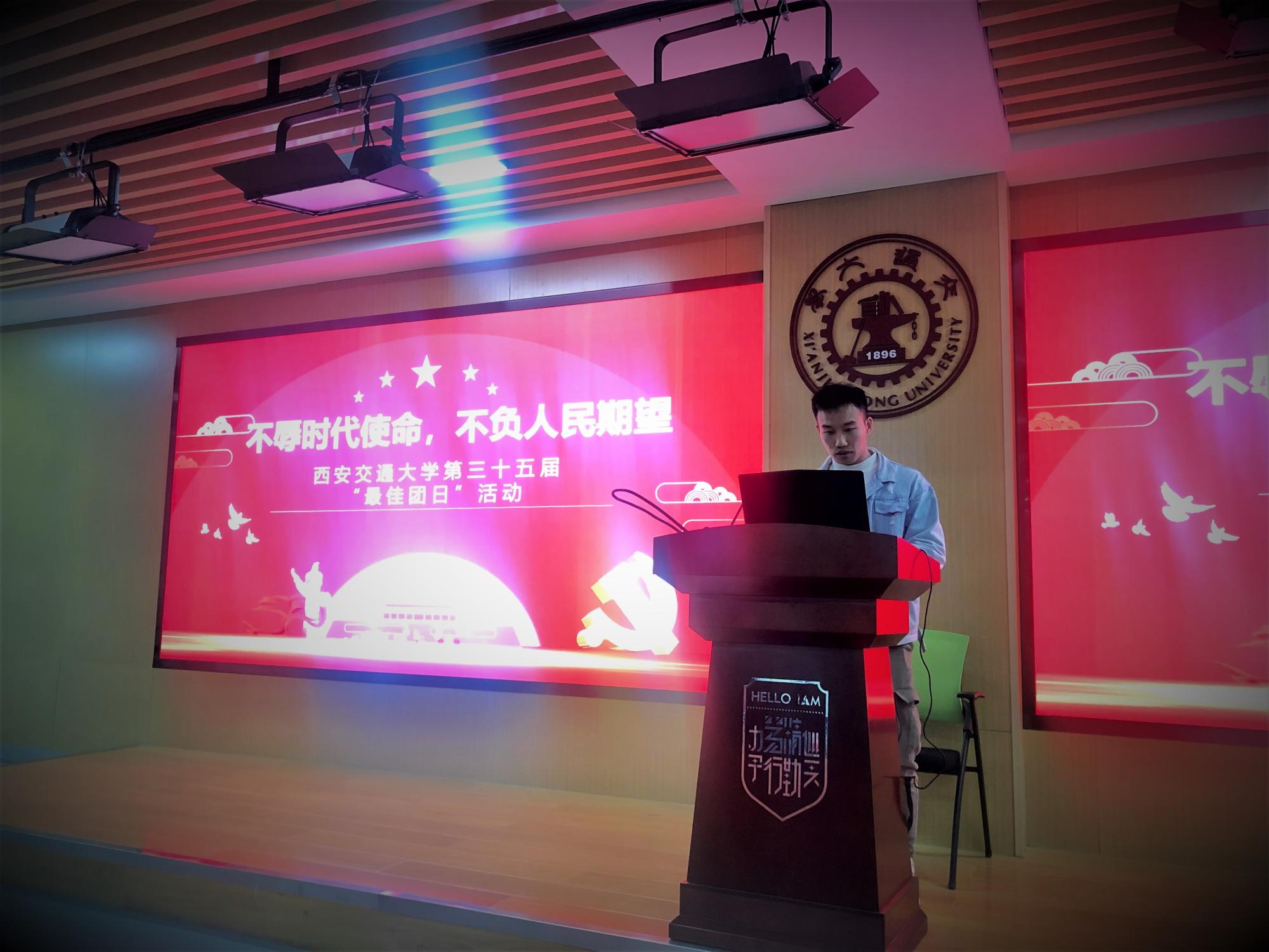 硕0094班王志国以“勇承时代使命,奋斗开创未来”的活动主题展开。他介绍到,班级每项活动参与人数均大于了95%,大家十分主动积极并充满热情。团日活动则主要介绍了优秀标兵经验分享会,航模协会学习交流沙龙,阅览中心志愿活动,交大数字展览参观活动,包干区域劳动等。