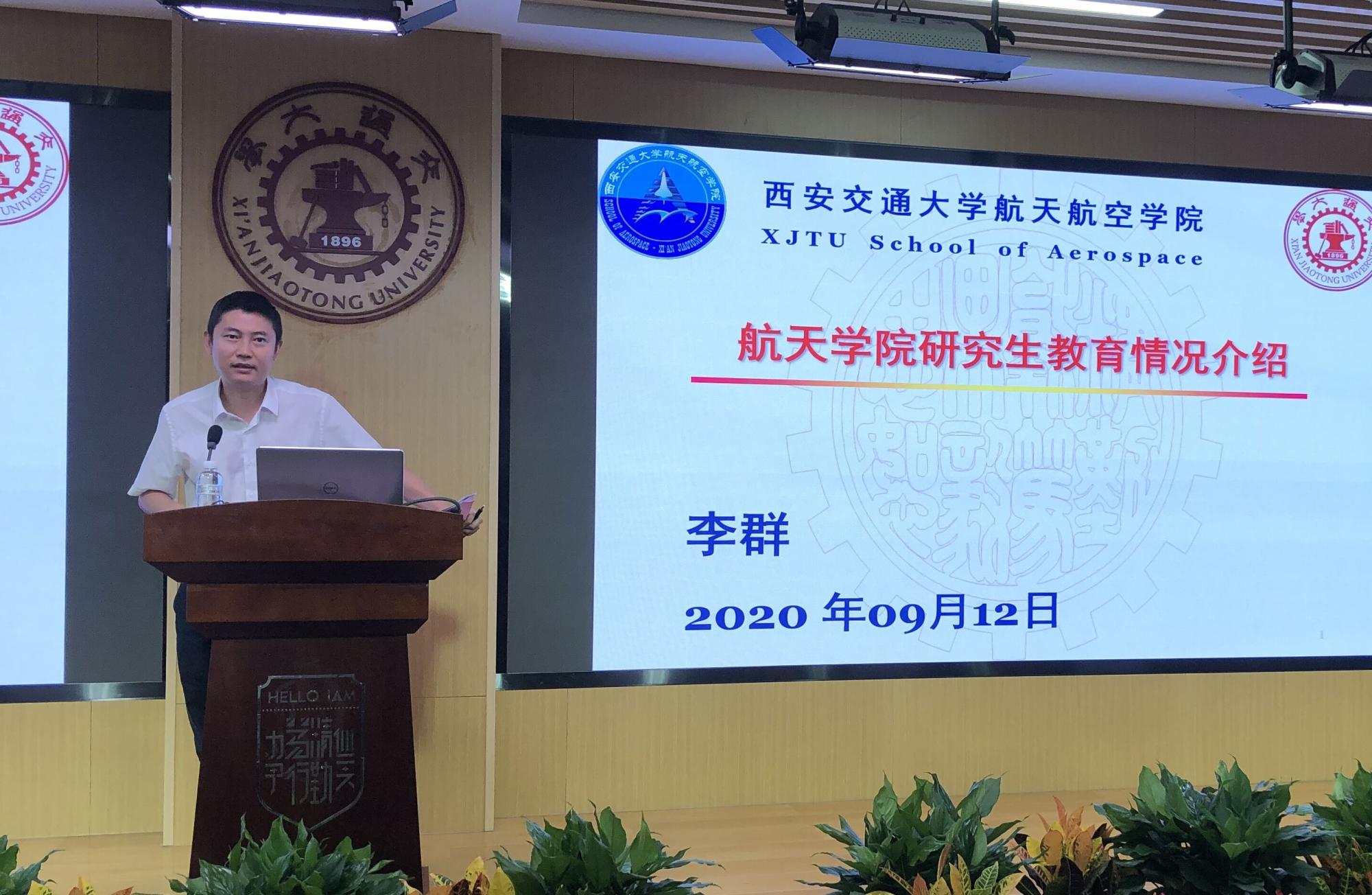 随后李群副院长介绍了研究生人才培养情况。他结合力学与航空宇航科学与技术两个学科,从研究生教育历史沿革、招生及培养情况、高质量的培养环境,研究生培养模式和成效等方面进行了细致详实的介绍。他寄语新生提高站位,立大志向,承担国家重大战略要求,争做栋梁之才。