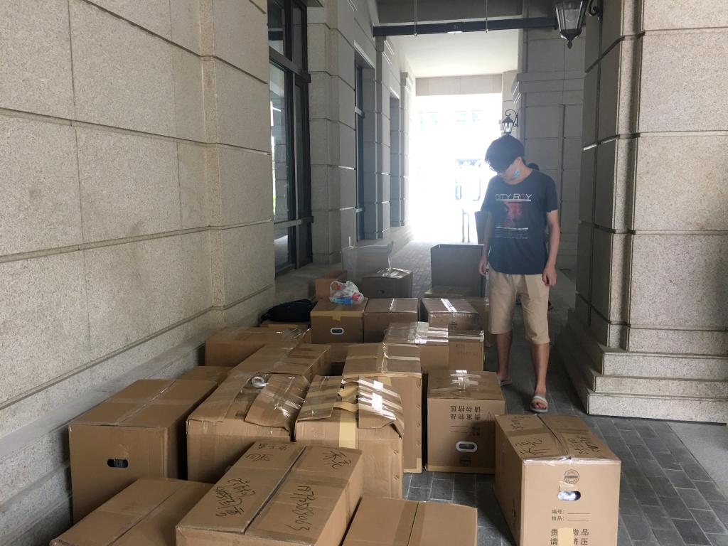 中午时分,烈日当头。搬家的货车来到力行楼南门前,已经有师生在这里等待接货。师生配合工人们十分仔细地将设备一个个卸下车来。一车货搬下来,师生和工人们的衣服都已湿透。工人雷朋看到老师和学生已经准备开箱组装仪器,他感叹到:“交大人是真的拼!”