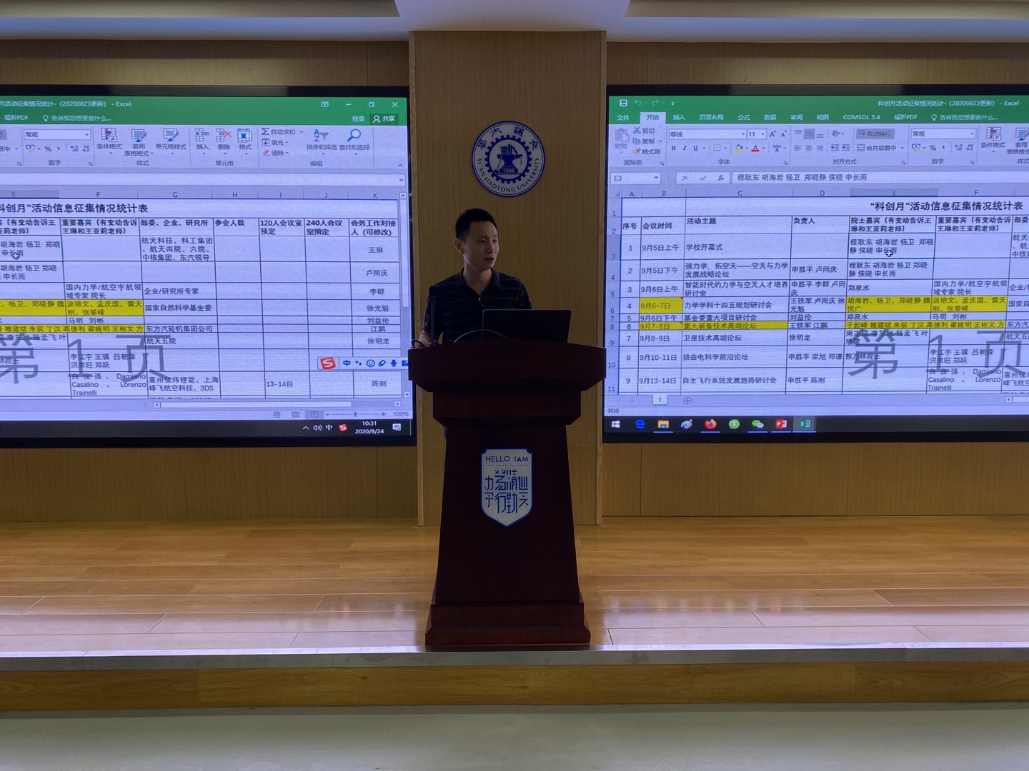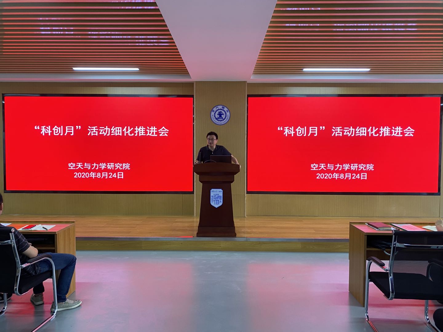 在创新港空天与力学研究院召开“科创月”活动细化推进会。学院党政领导、“科创月”各项学术活动负责人及院办全体职员参加了会议。
