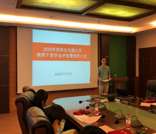 全体参会委员对所有候选人材料进行了评审、投票,最终评出2020年唐照千奖学金获得者,随后举行了颁奖仪式,由王铁军副校长、何雅玲院士、申胜平院长为各位获奖同学颁发了证书。